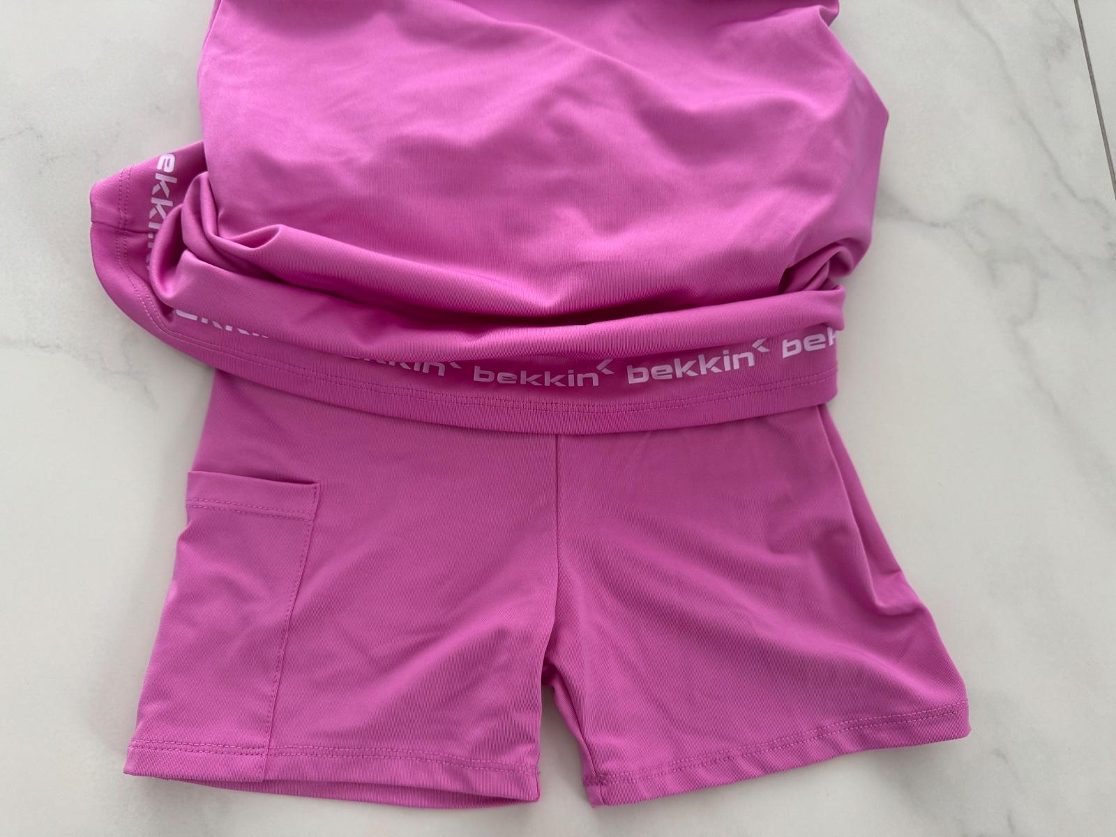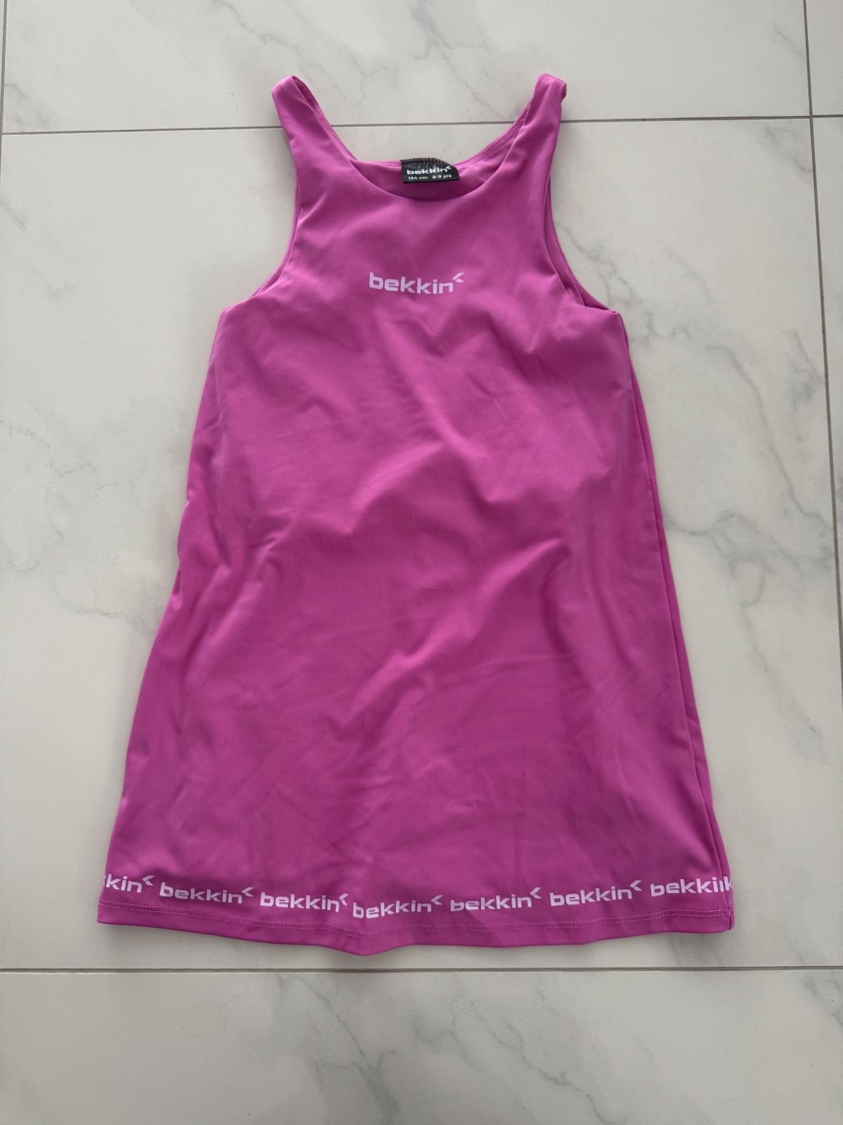 Predám športové šaty vo veľkosti 134 pre dievčatko. Nosené dcérkou. Bez poškodenia. Pod šatami sú všité kraťasky s vreckom na tenisovú loptičku.