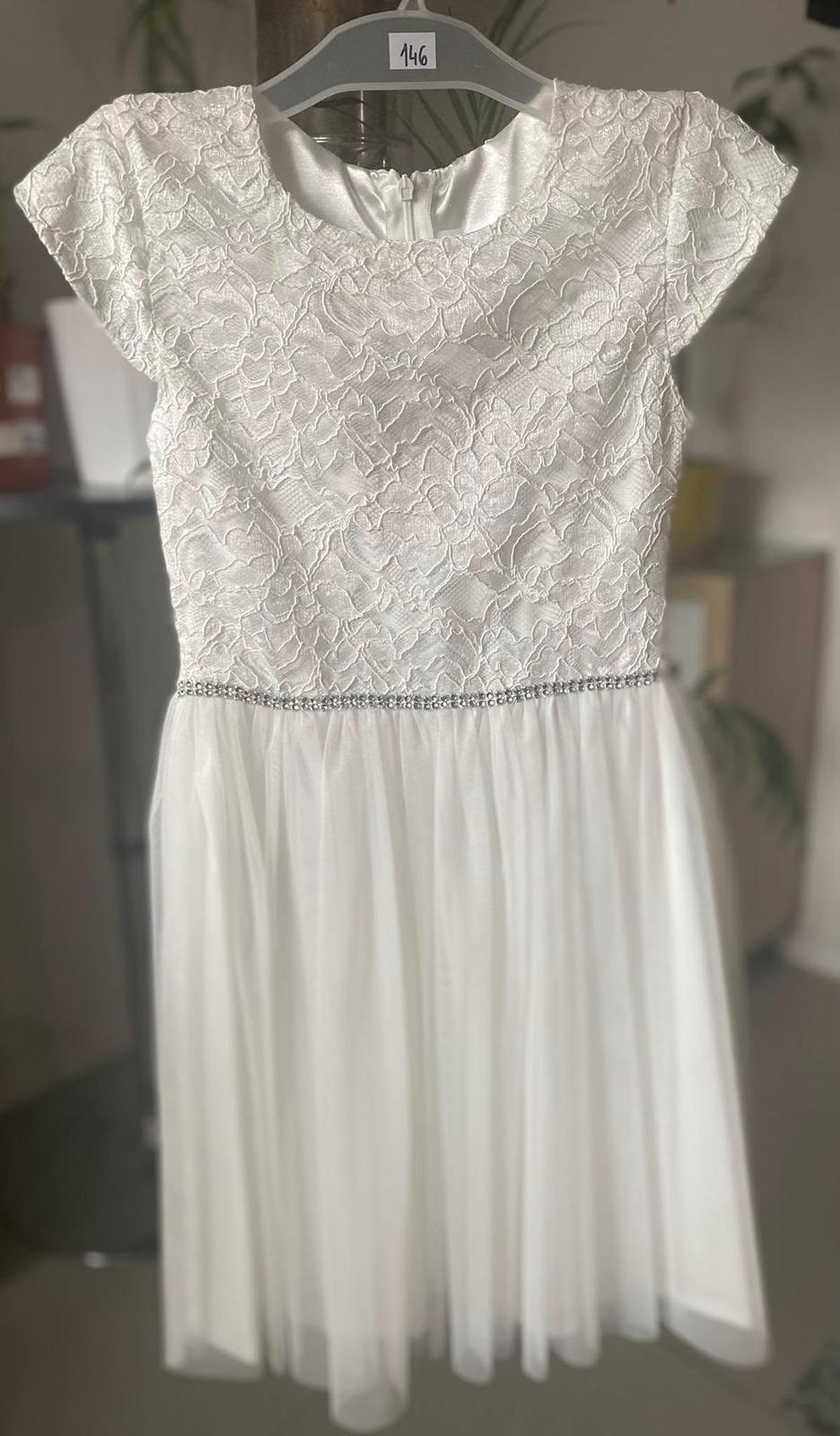 Skladom krásne slávnostné šaty s tylom, šaty sú so spodničkou, vrchná časť čipka. Zapínanie na zips.