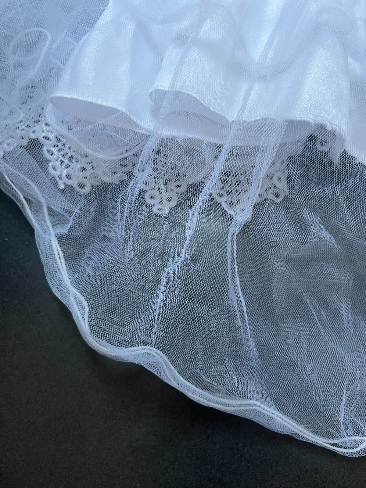 maju niekolko spodničiek, bohato riasenu suknu, zadný diel je dlhší
