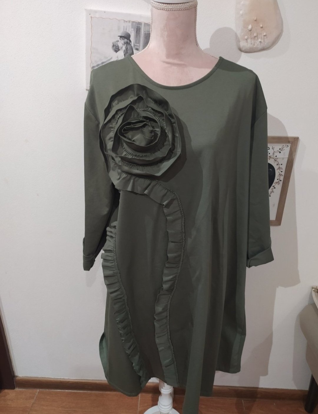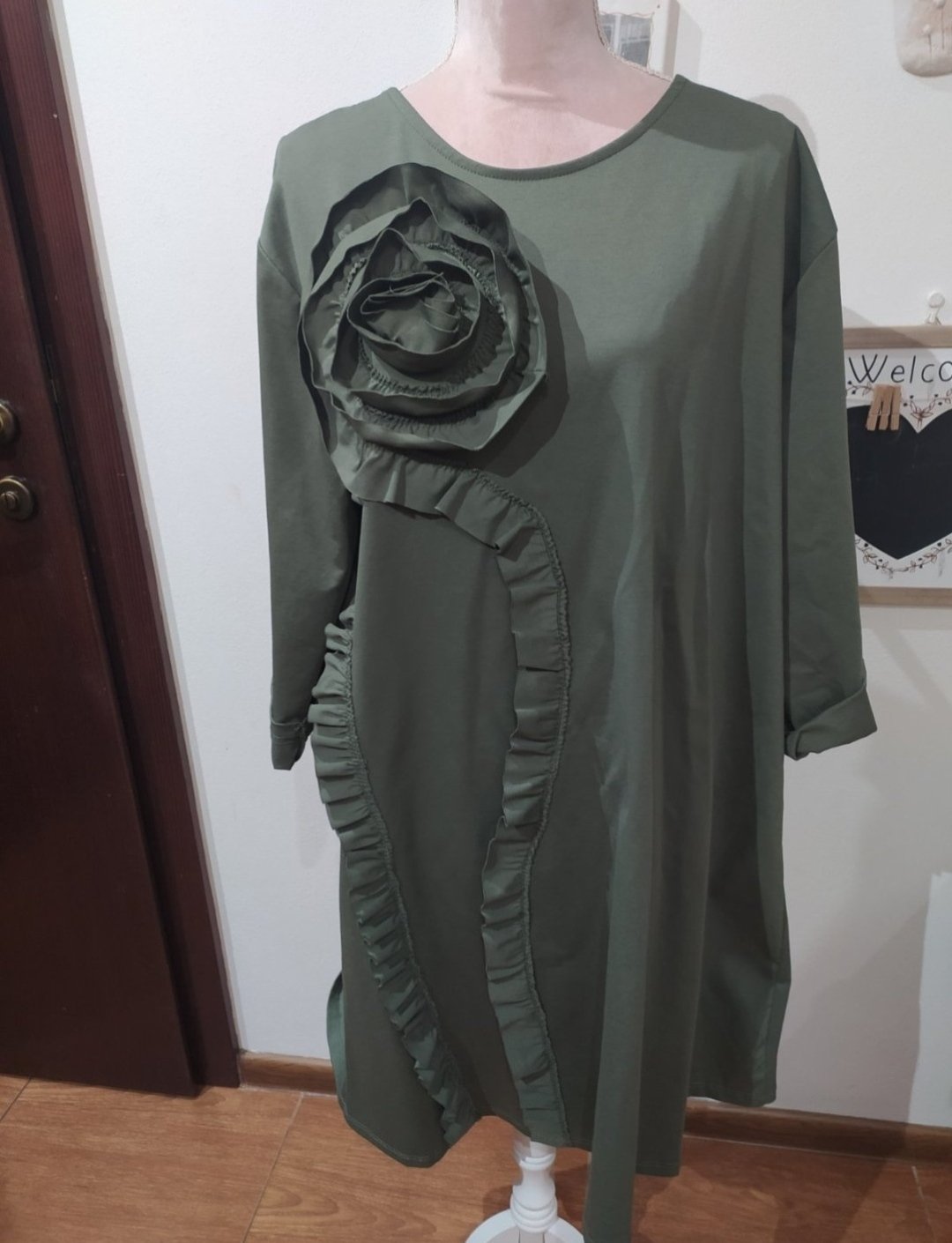 Krásne šaty, voľného strihu s aplikáciou 3D kvetu.vel ,nenosené bez visačky ,Uni vhodné pre veľ S-L