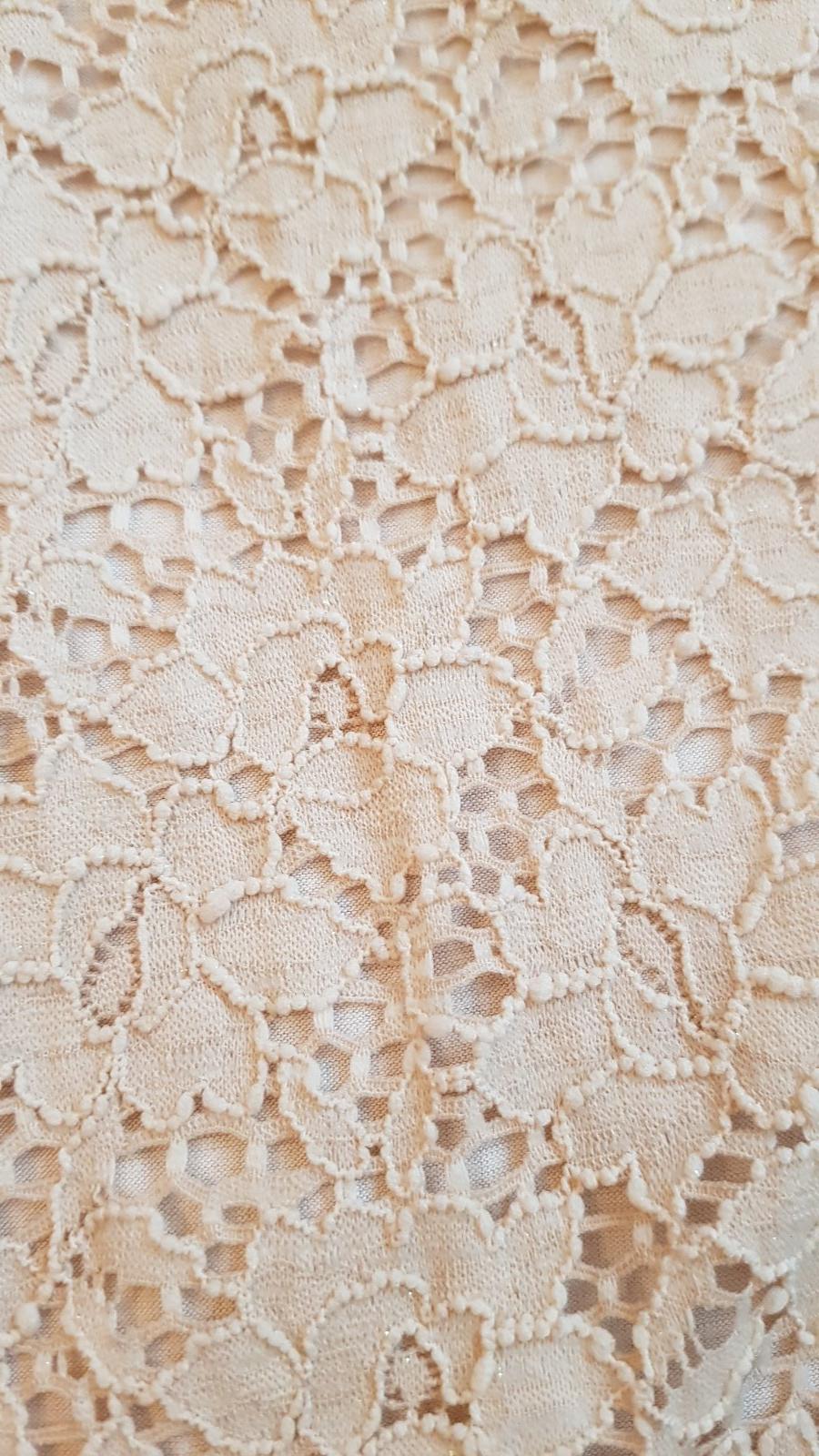 Predavam cipkovane saty, ponosia zeny velkosti S/M. Dlzka je 74 cm a sirka pasu 37 cm, latka je elasticka, vie sa trochu prisposobit. Saty su v dobrom stave, pod cipkou je prijemna latka