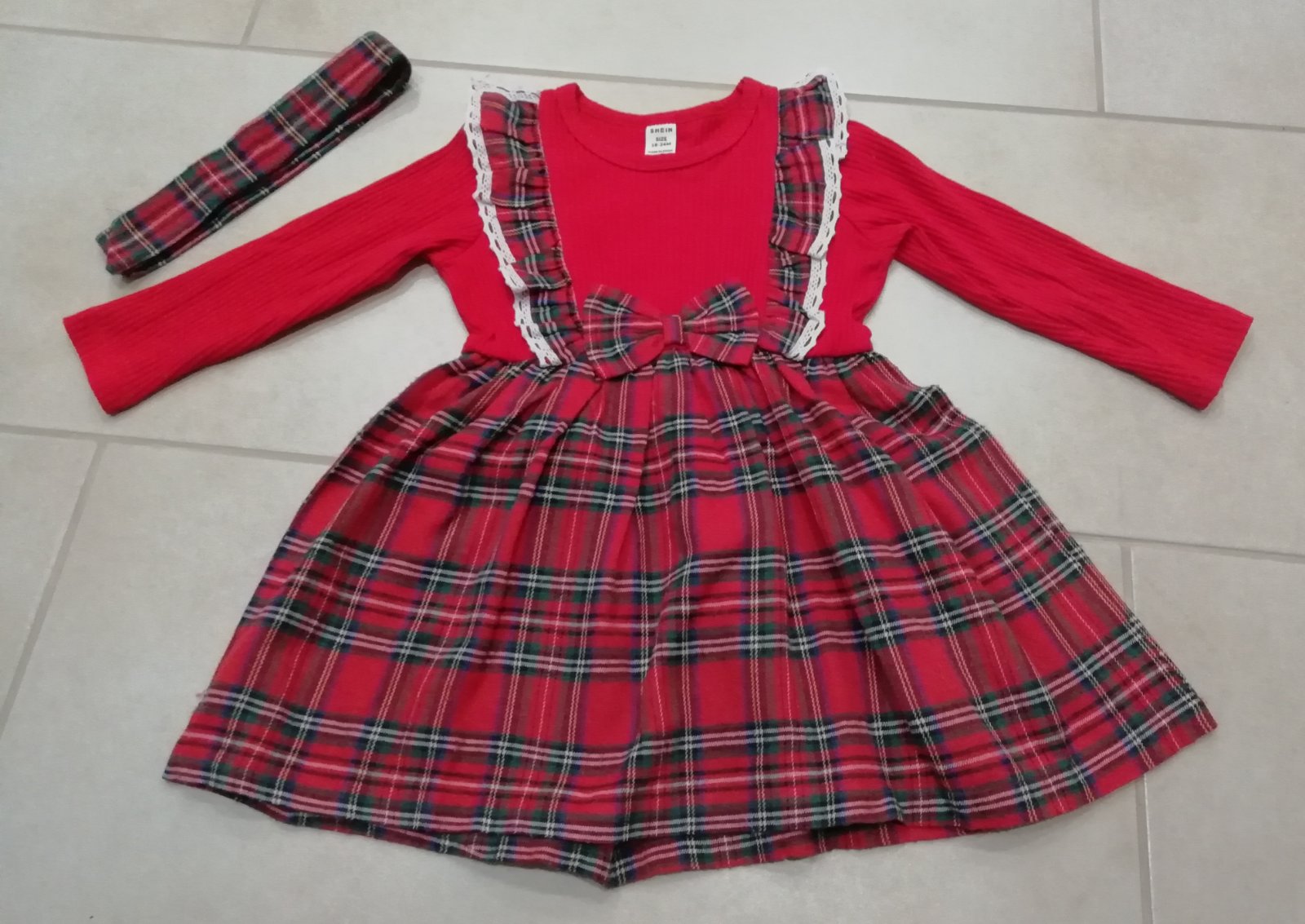 pekné teplé šatky pre malú parádnicu. dá sa pripevniť aj pekný biely límček. šatky sú šité doma asi tak na 2 roky + - dĺ. 42 cm, š. pod paz. .28 cm x2, rukáv od ram. 37 ccmm. vnútor. dĺ. rukáva 22