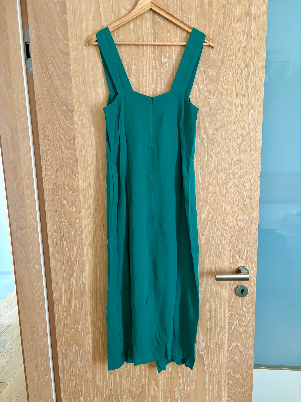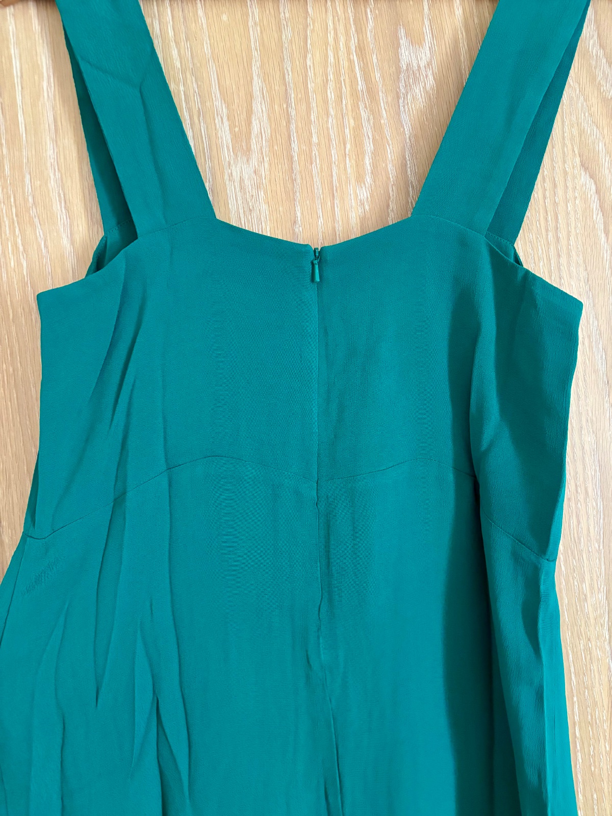 Hodvábne ombre šaty v krásnych zeleno-čiernych farbách. Šaty majú široké ramienka. Sú prestrihnutá pod prsiami. Má aj čierny hodvábny opasok. Zapína sa na dva gombíky. Zloženie je 100% hodváb, podš...