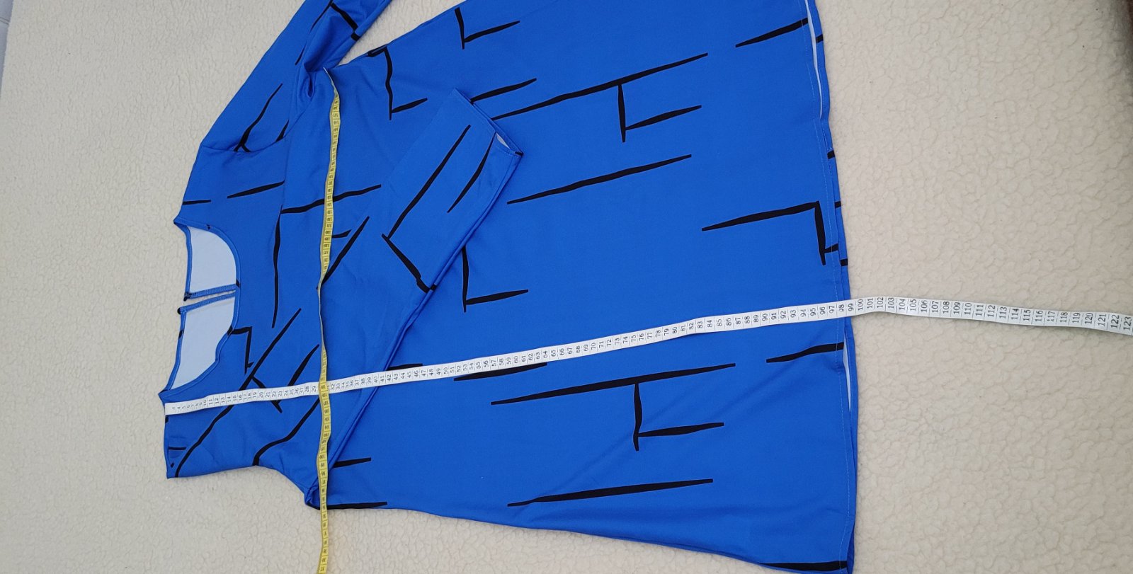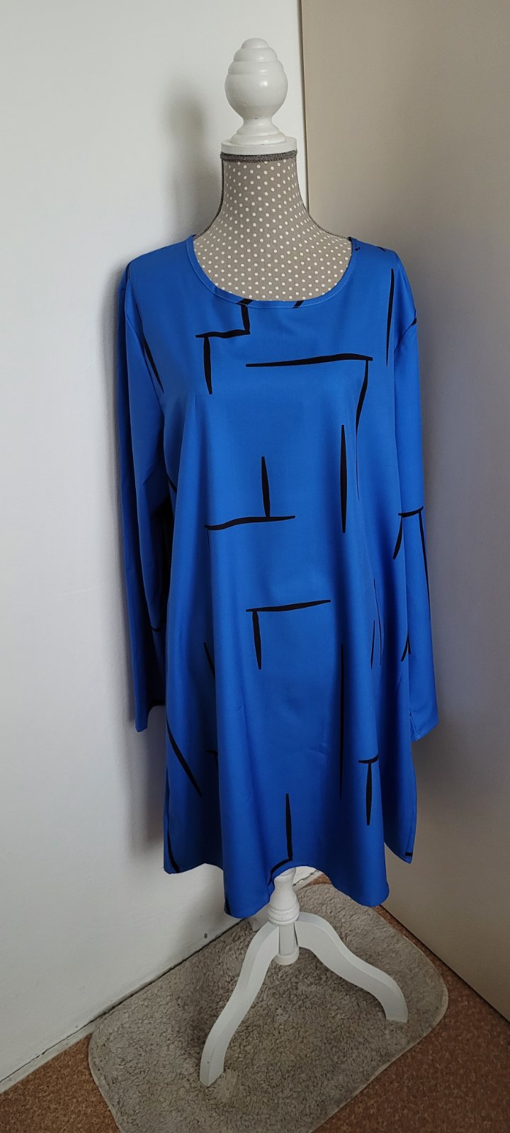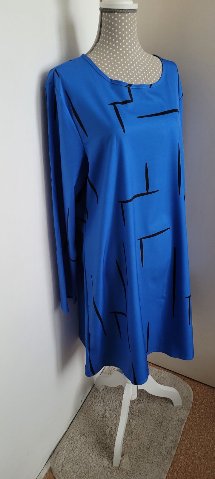 Dámske šaty s potlačou pratelné v práčke. Neoblečené, ale vyžehlené. Zloženie: polyester, elastan.