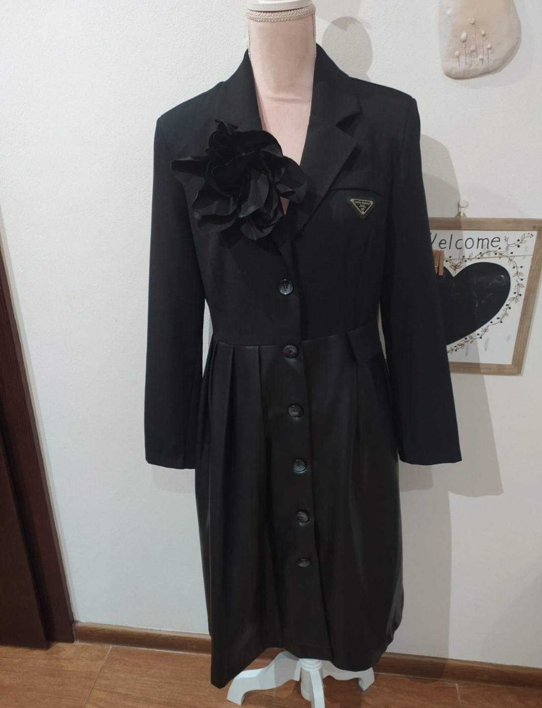 Luxusné šaty sakového strihu, oblečené 1x v top stave.Vhodne aj na príležitosť.Kombinovane koženkou