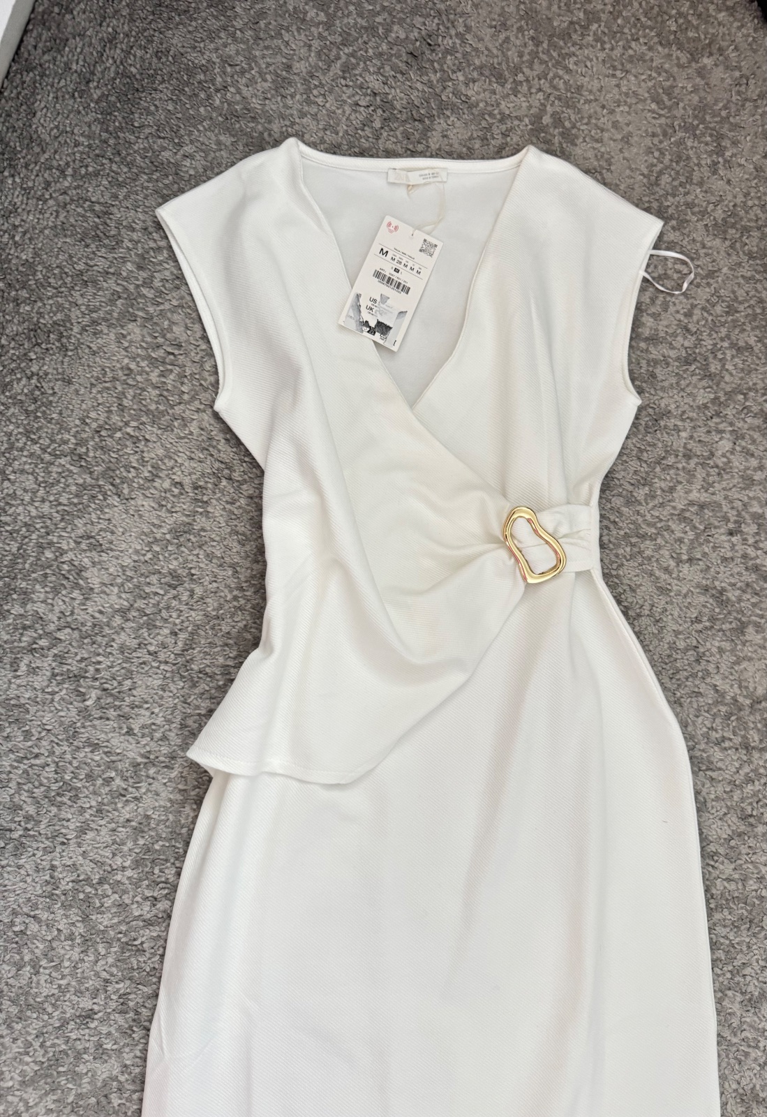 Predám nové originál šaty značky Zara, zapínanie gombíky, široké manžety, vpredu vrecká. Bez poškodenia samozrejme. Voľný strih. Rozmery: dĺžka vpredu 120cm vzadu 130cm, šírka cez prsia 68cm, rukáv...