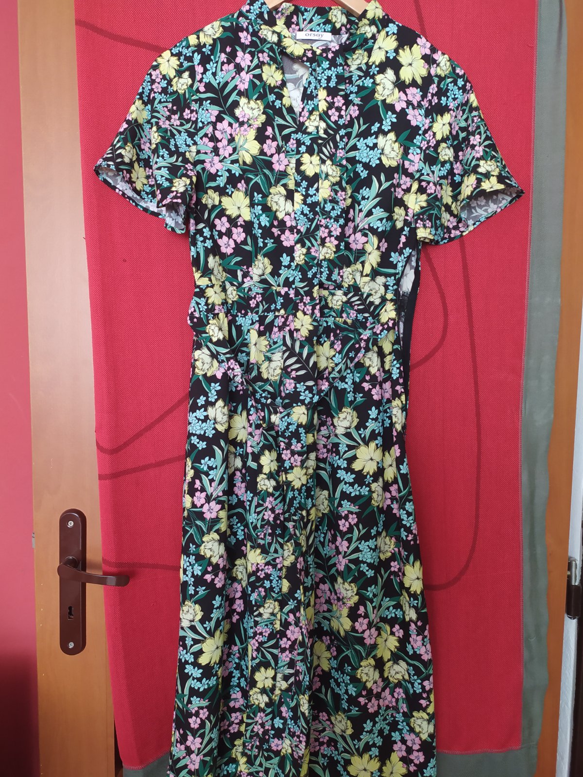 Krásne letné šaty. Ako nové. Pri krku a v páse sú ešte pásy látky na previazanie.