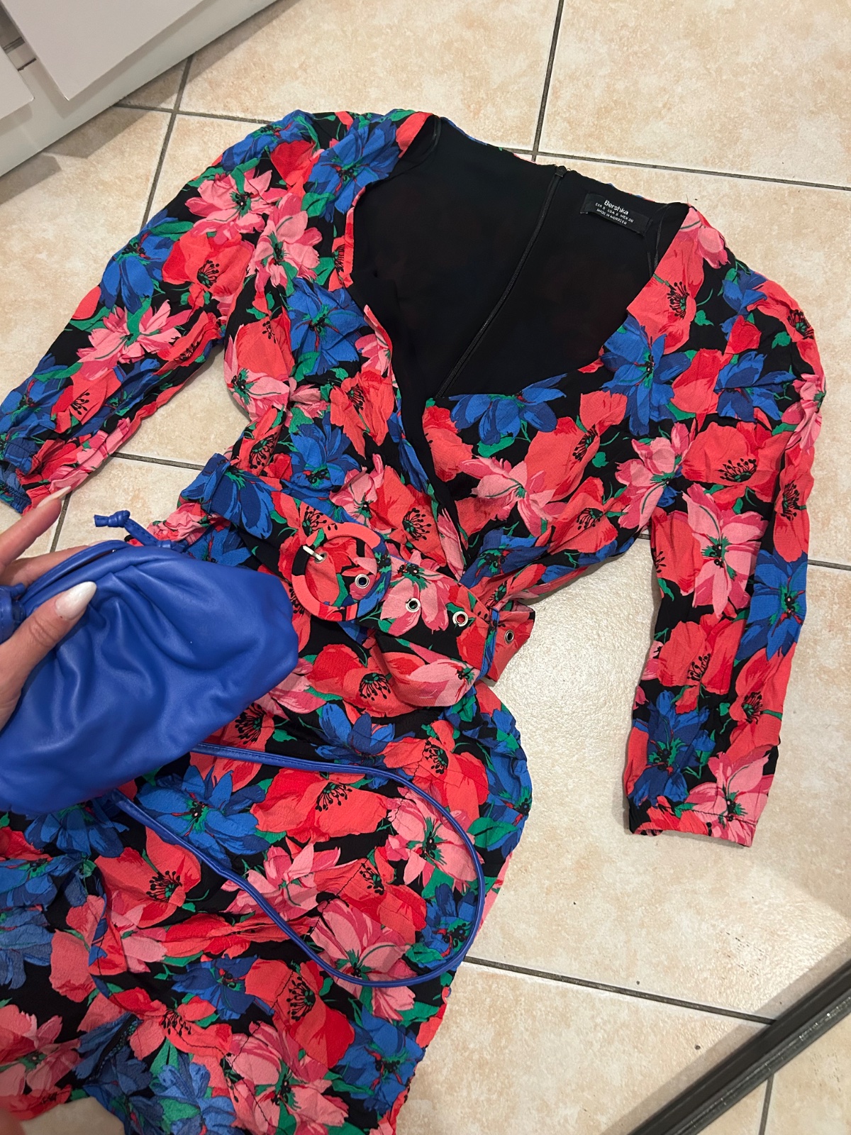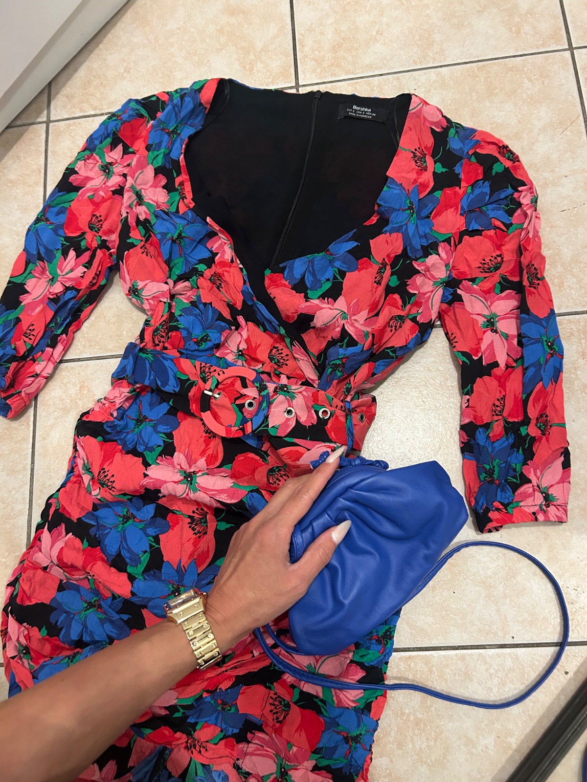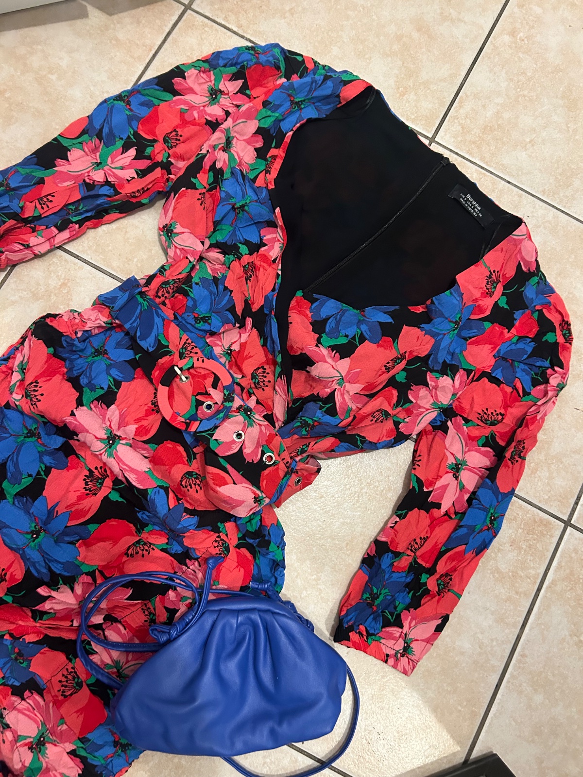 Nádherne šaty. Pestré. Tie farby sú nádherne. Raz vzaté. S veľkosť. Vzadu zips. Opasok - modrá kabelka v ponuke. Viem sa spolu dohodnúť na cene. 💙💙💙