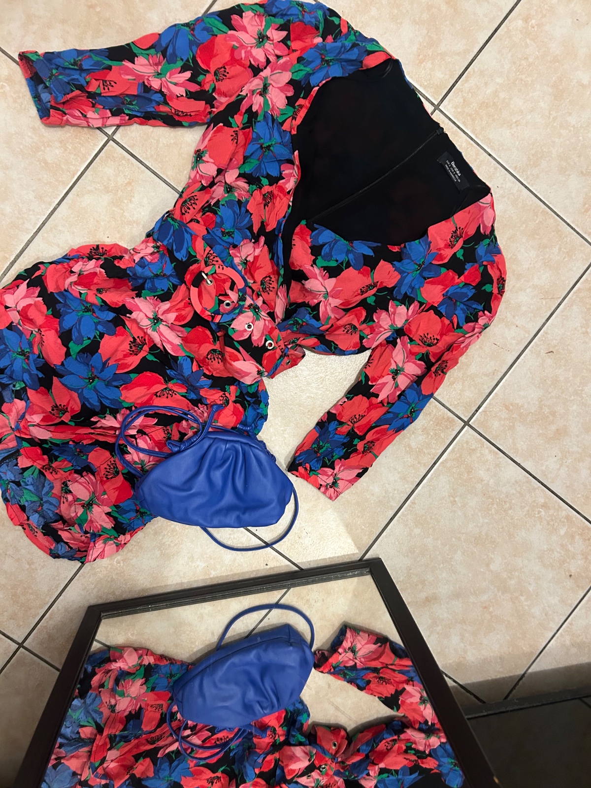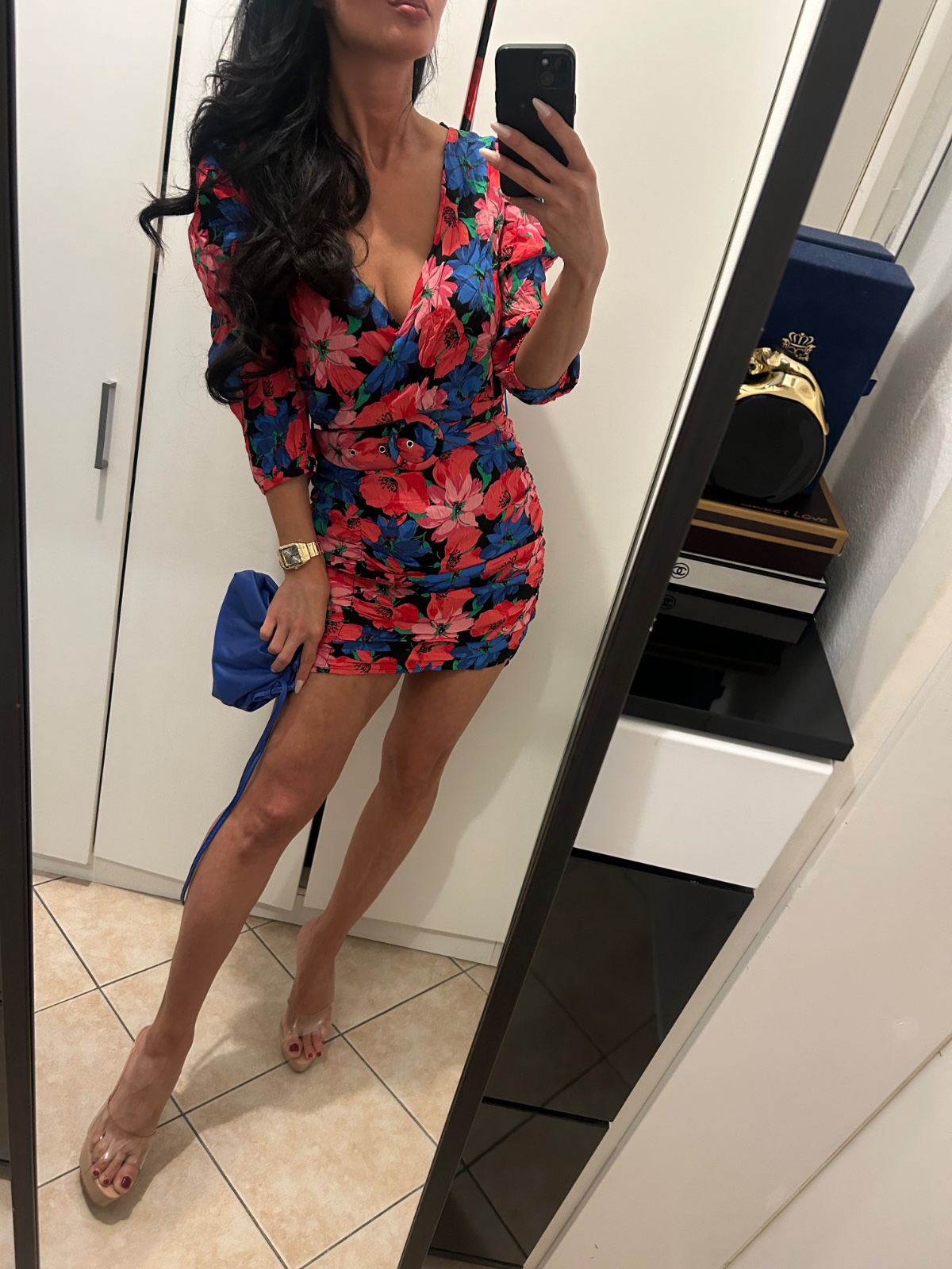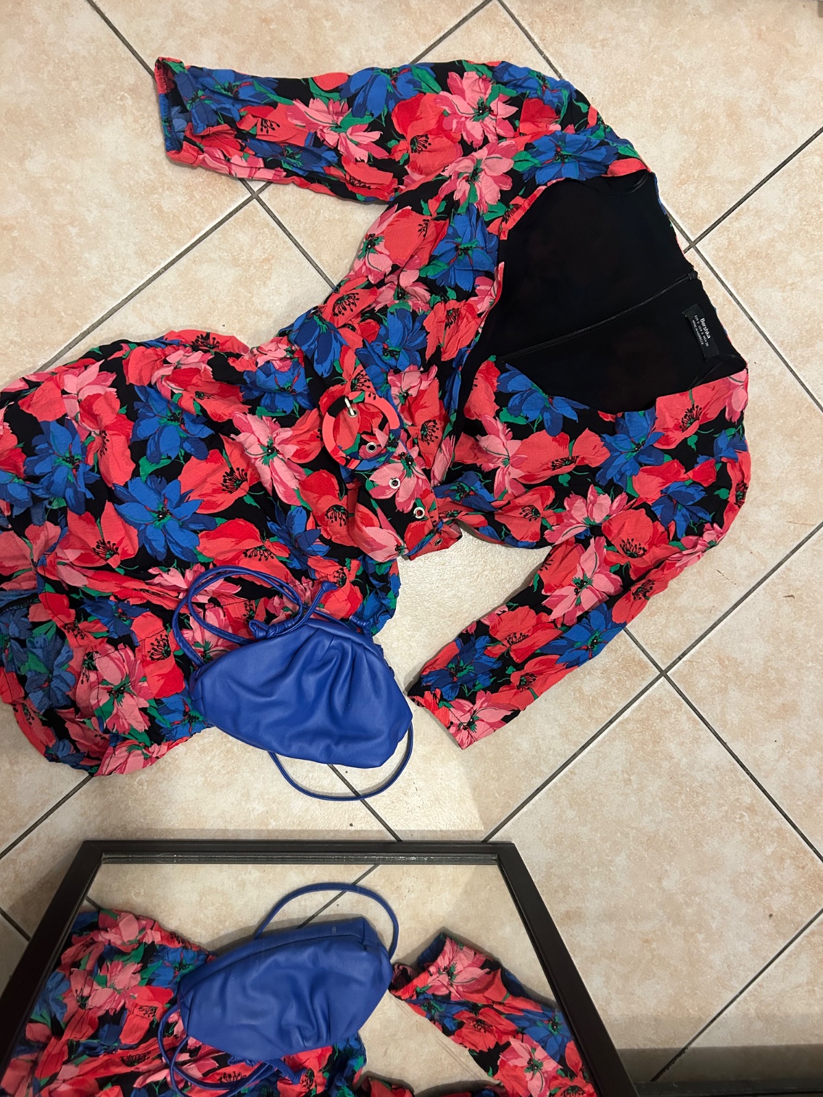 Nádherne šaty. Pestré. Tie farby sú nádherne. Raz vzaté. S veľkosť. Vzadu zips. Opasok - modrá kabelka v ponuke. Viem sa spolu dohodnúť na cene. 💙💙💙