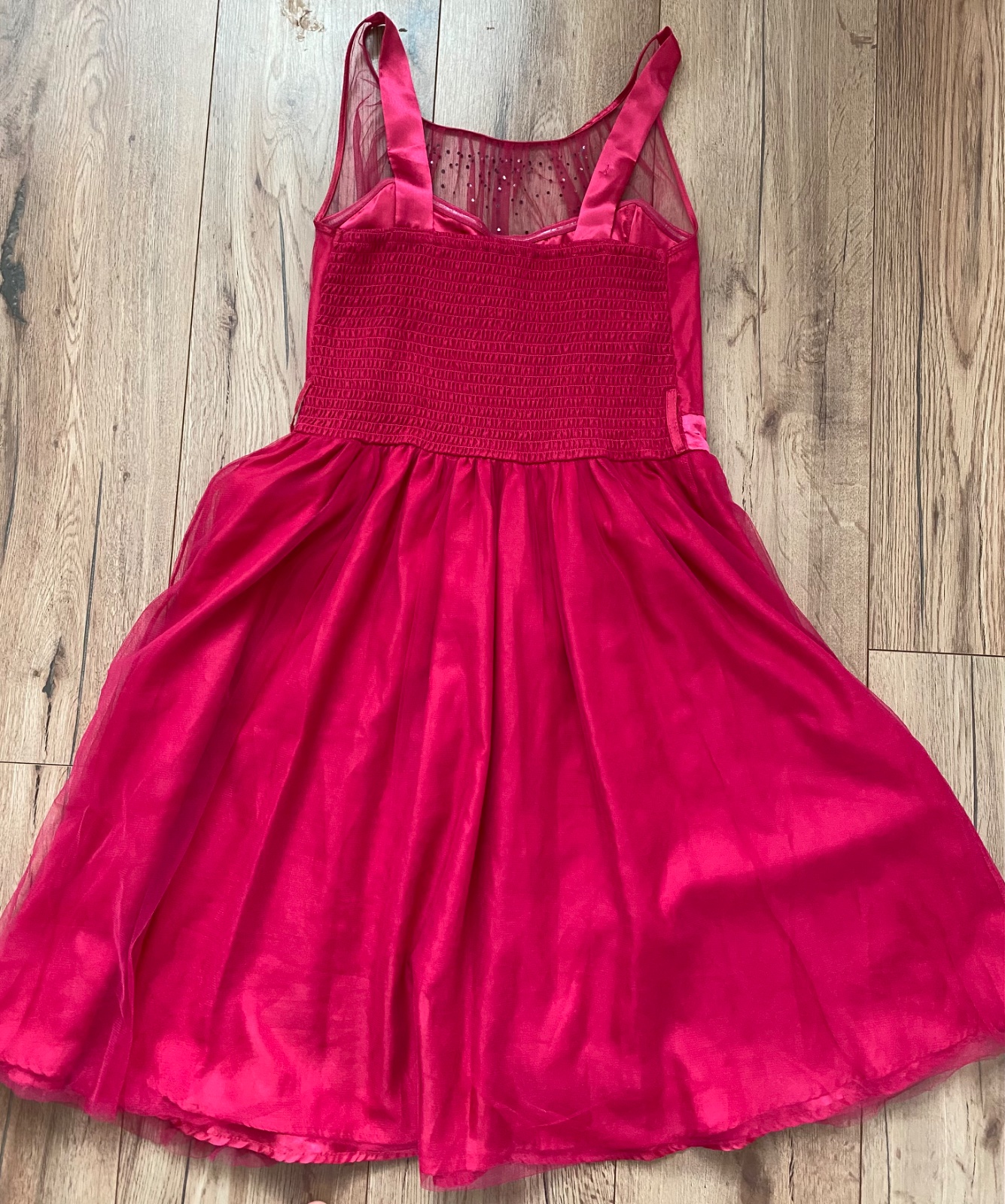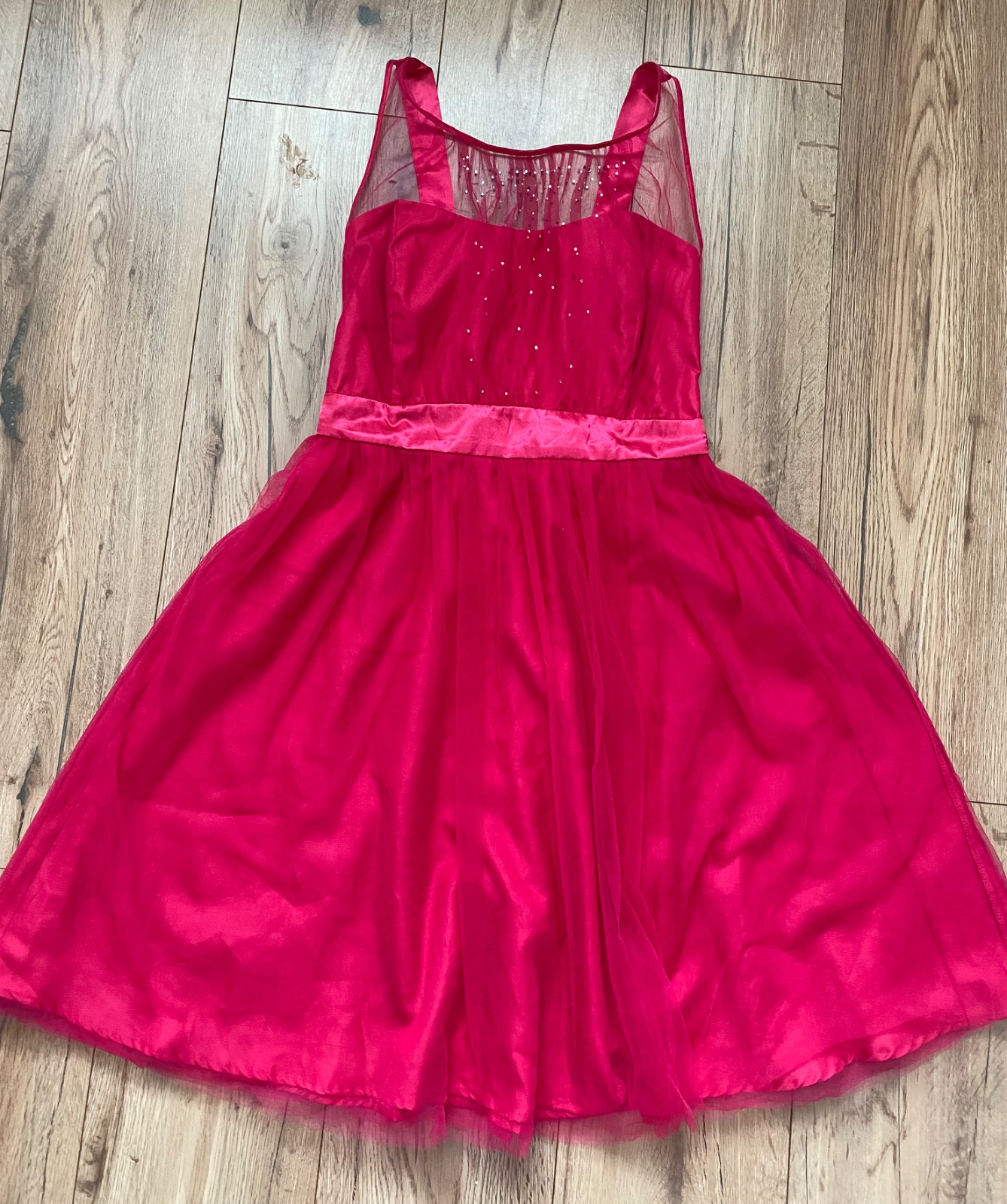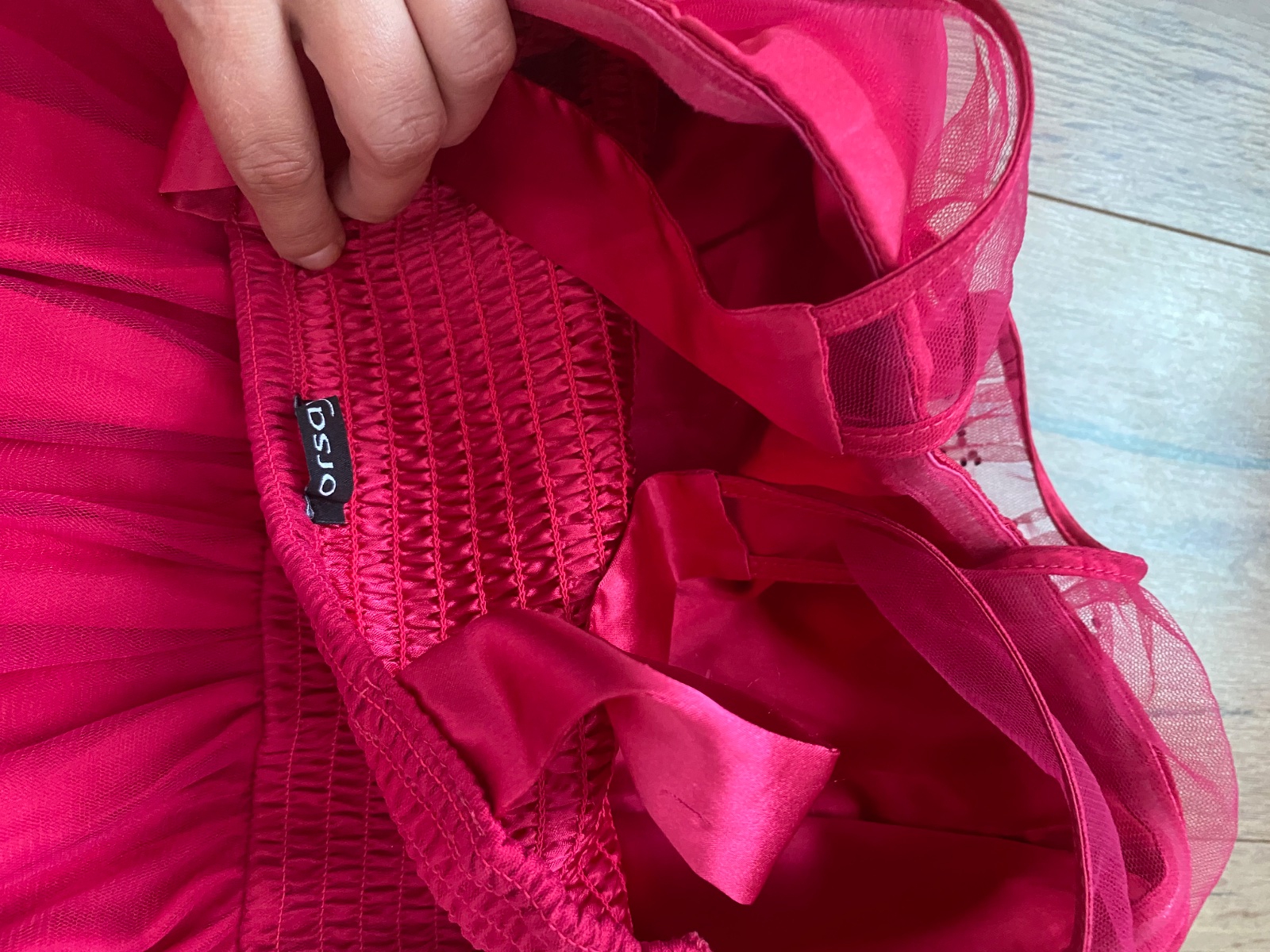 Farba skreslena,je pekna malinova ruzova. Velkost je L ale sedia na Mko,bez poskodeni