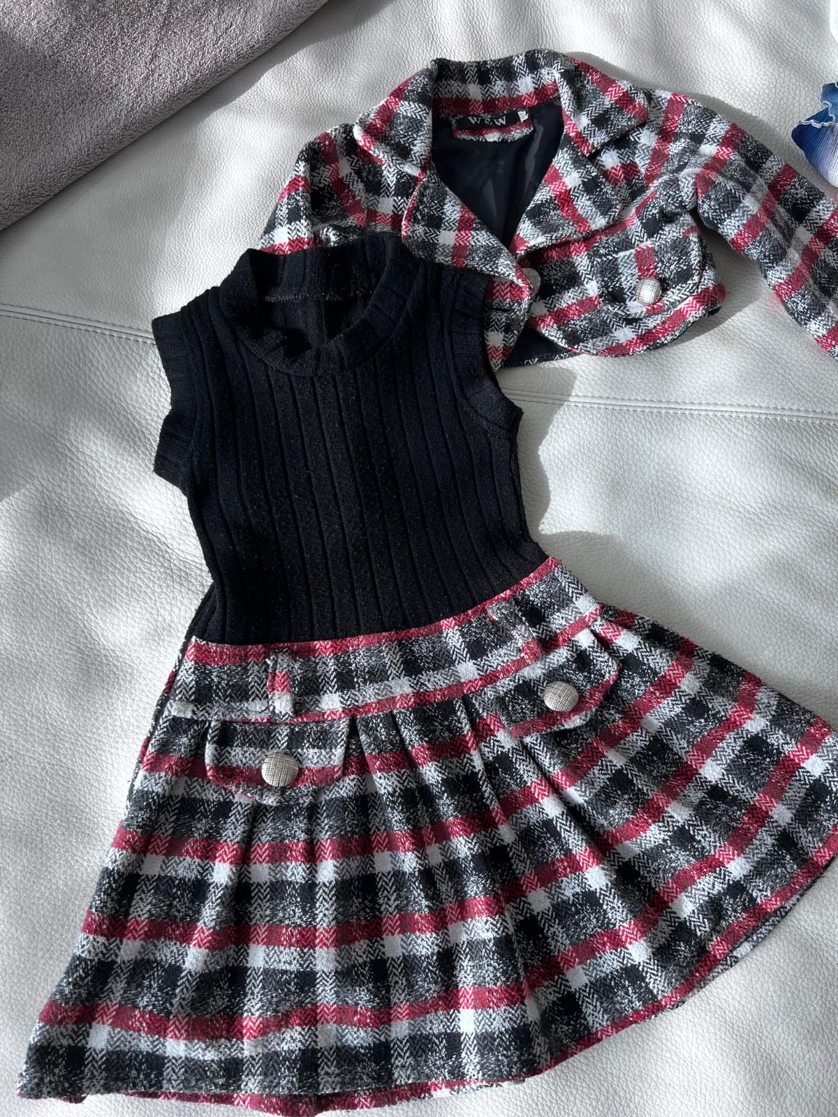Dievčenské zimné šaty s kabátikom-bolérkom vel.130