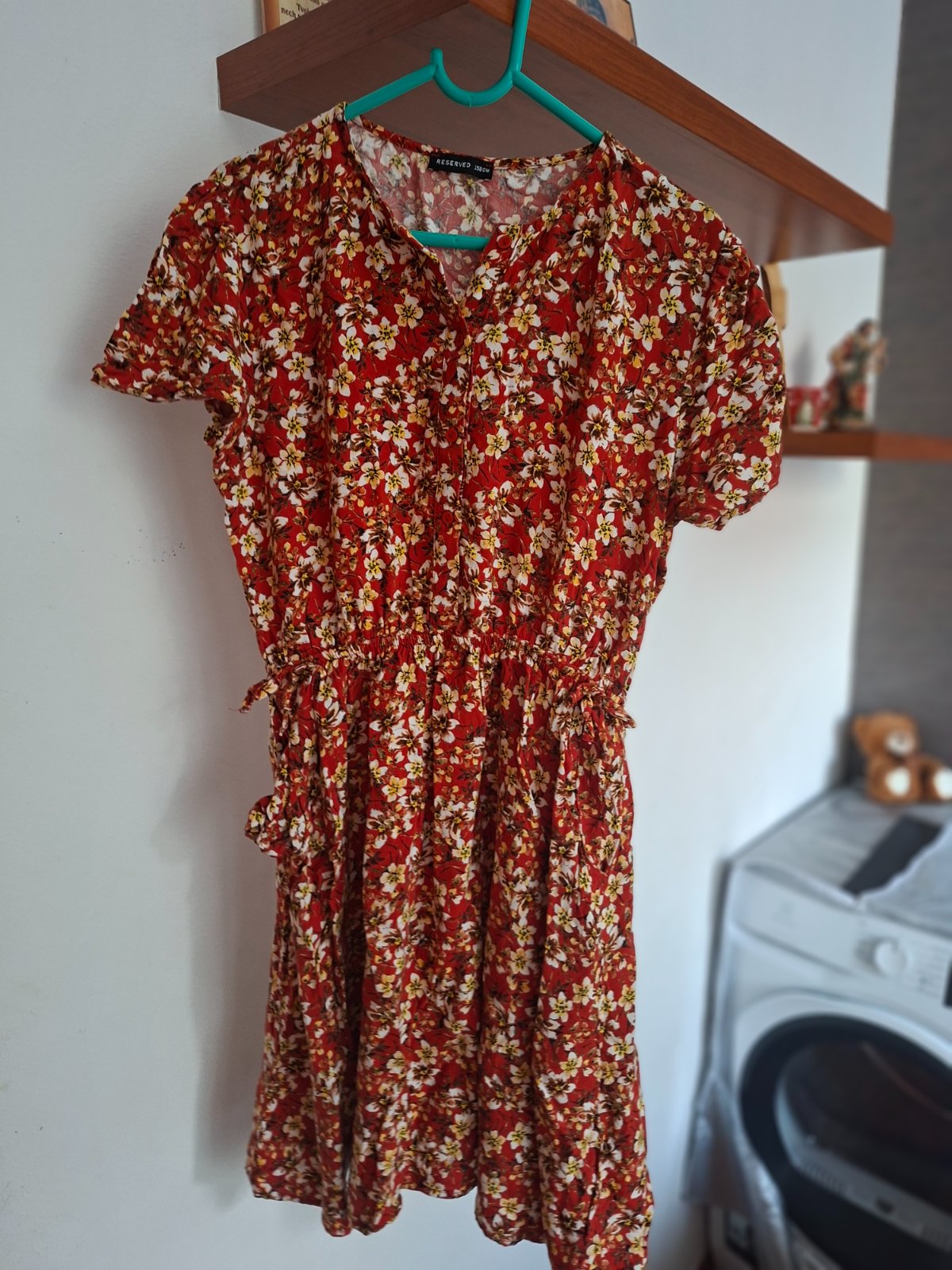 Šatky lahke, tenke, letné, v pase gumička prispôsobi sa na postavu.So žltými kvetinkami.