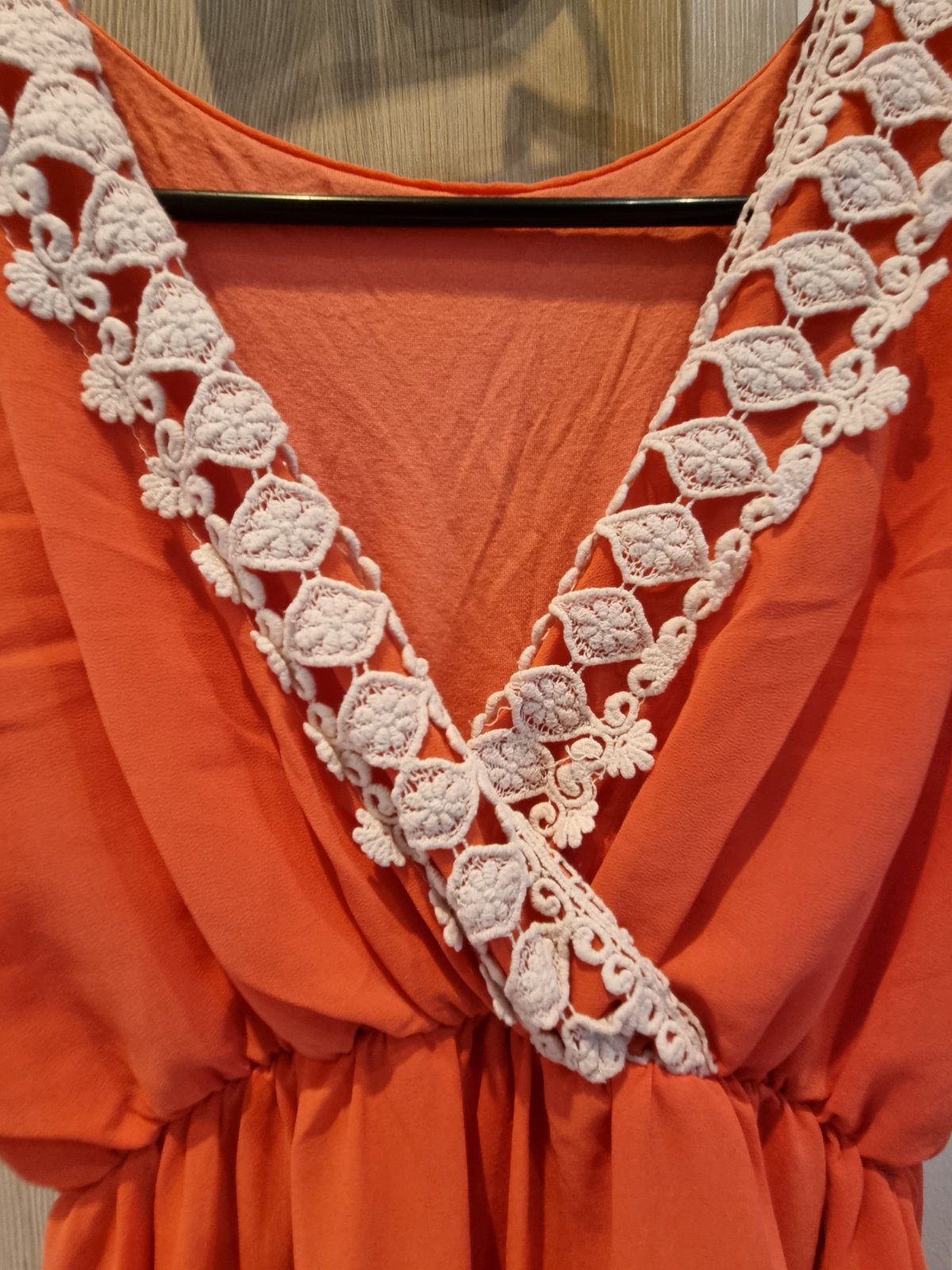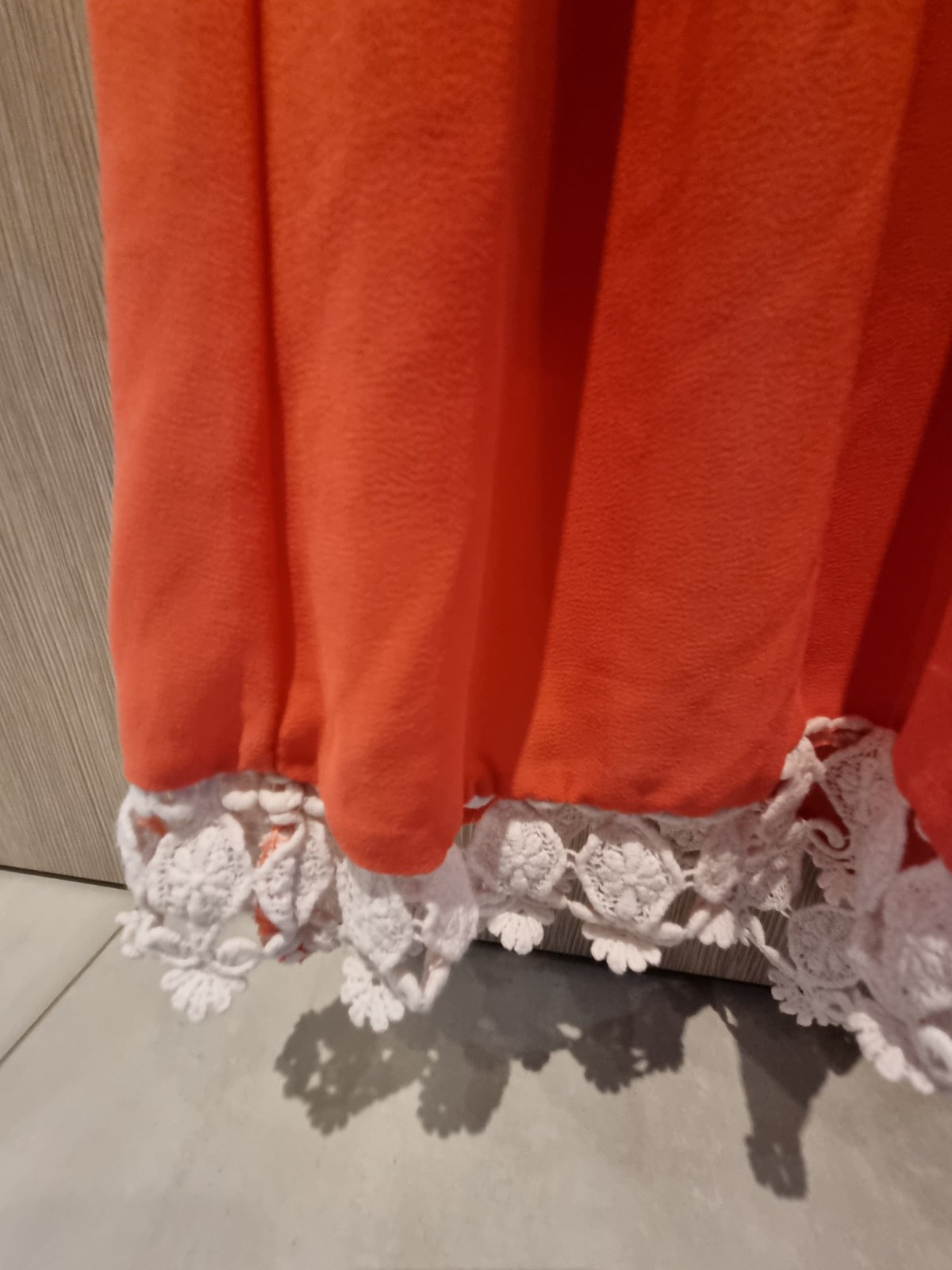 Krásne, ľahučké. Marhuľový podklad s nádherným motívom kvetov. Vrchná látka je jemný satén. Len vyskúšané. Na živo ešte krajšie.