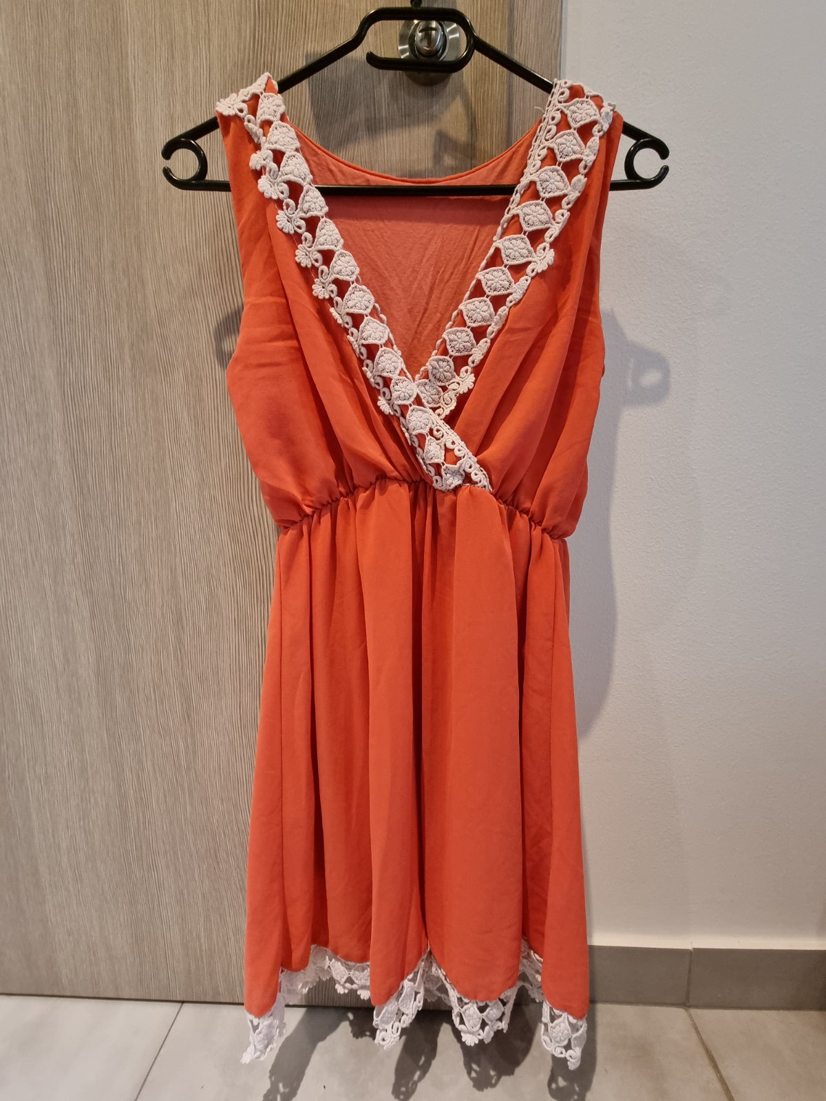 Lososové/bledoružové šaty. Sedia na veľkosť M. Farba je bledšia ako na fotke, skôr do lososovej/ružovej.