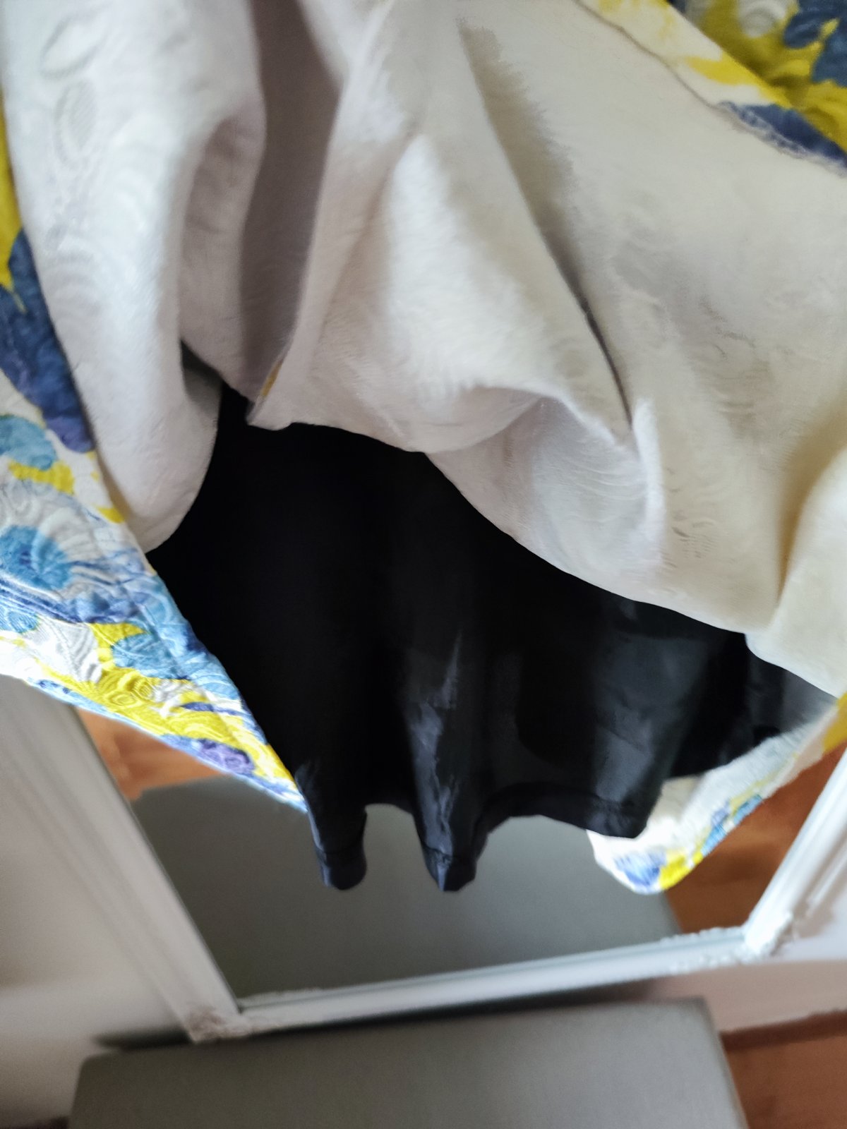 Sú v super stave, dĺžka je 88cm, cez prsia majú max 46cm x2, látka je skôr pevná.
