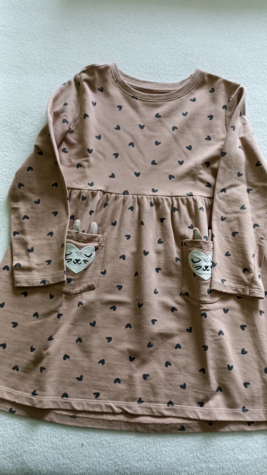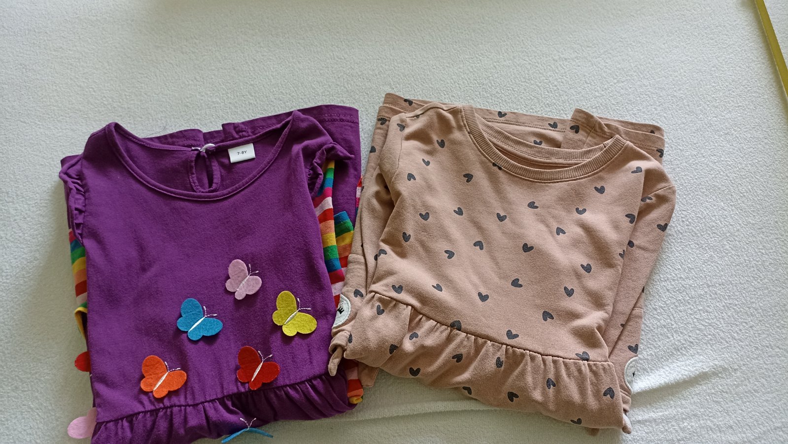 Ponúkam na predaj bavlnené šaty bez elastanu. Fialové sú ako nové, boli oblečené asi 2x. Hnedé so srdiečkami boli nosené do škôlky. Trocha sa začali párať pod pazuchami -dcéra je silnejšia, tak som to pozašívala, viď detaily. Ale ešte poslúžia. Cena je za obe a bez poštovného.