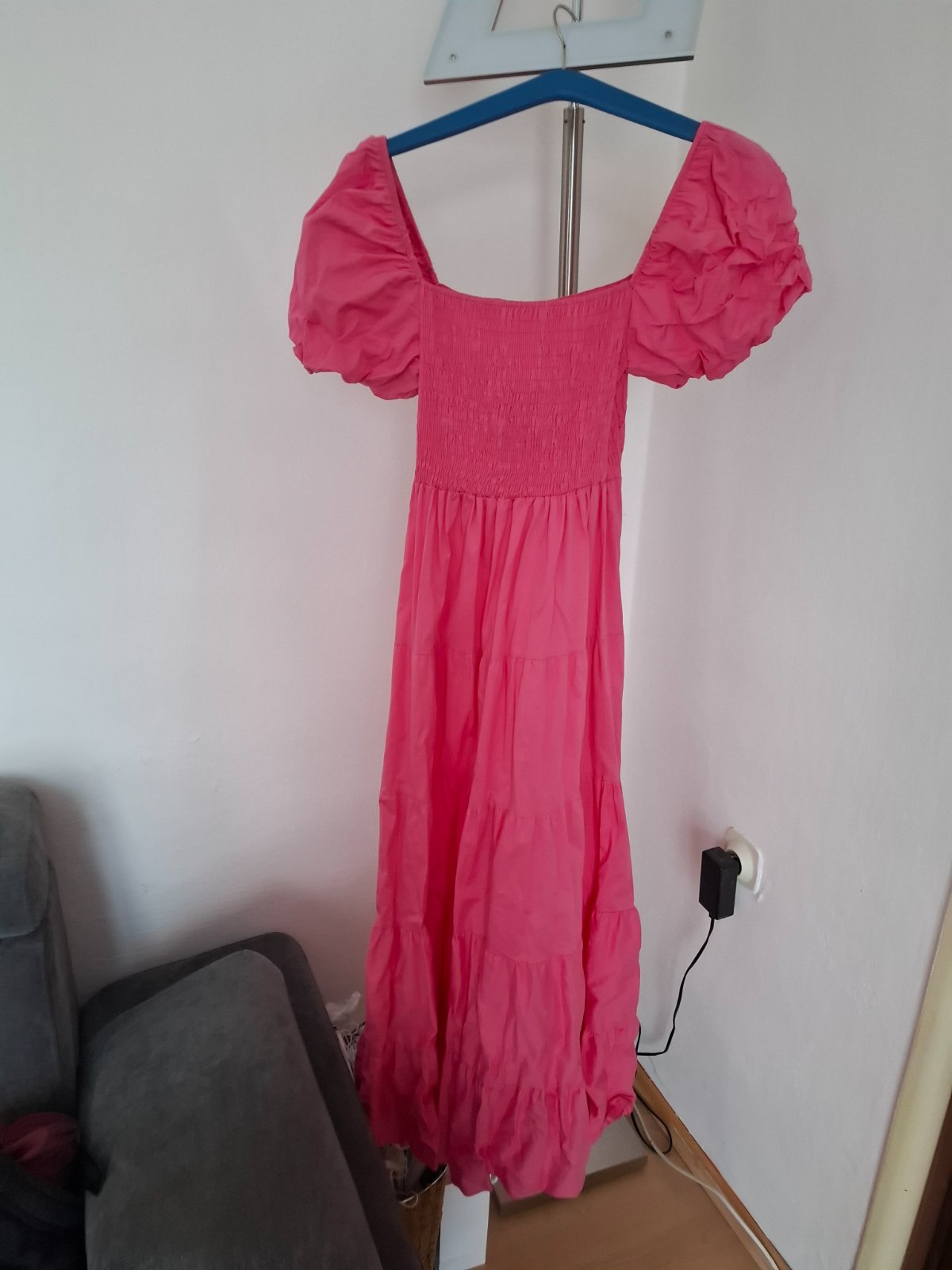 Materiál ľahký, farba sýta ružová, možno nosiť s odhalenými plecami, alebo ako kr. rukáv...cena15e