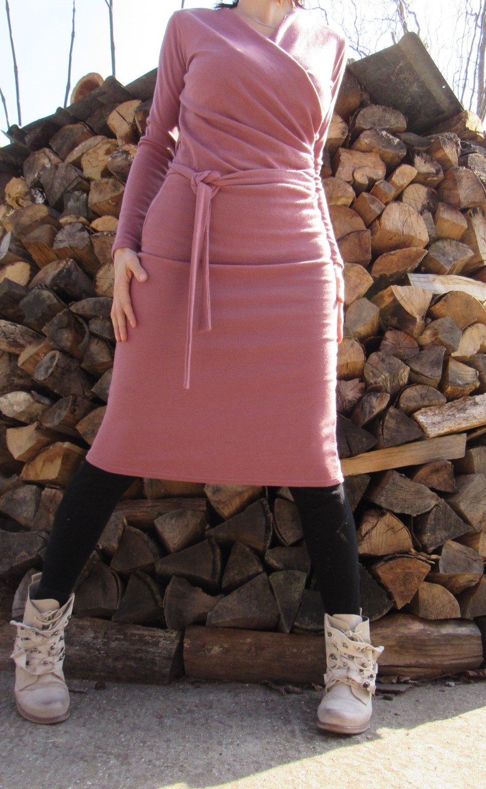 pekná staroružová farba, sú z hrubšieho úpletu, krásne tvarujú postavu, majú opasok, super aj na kojenie