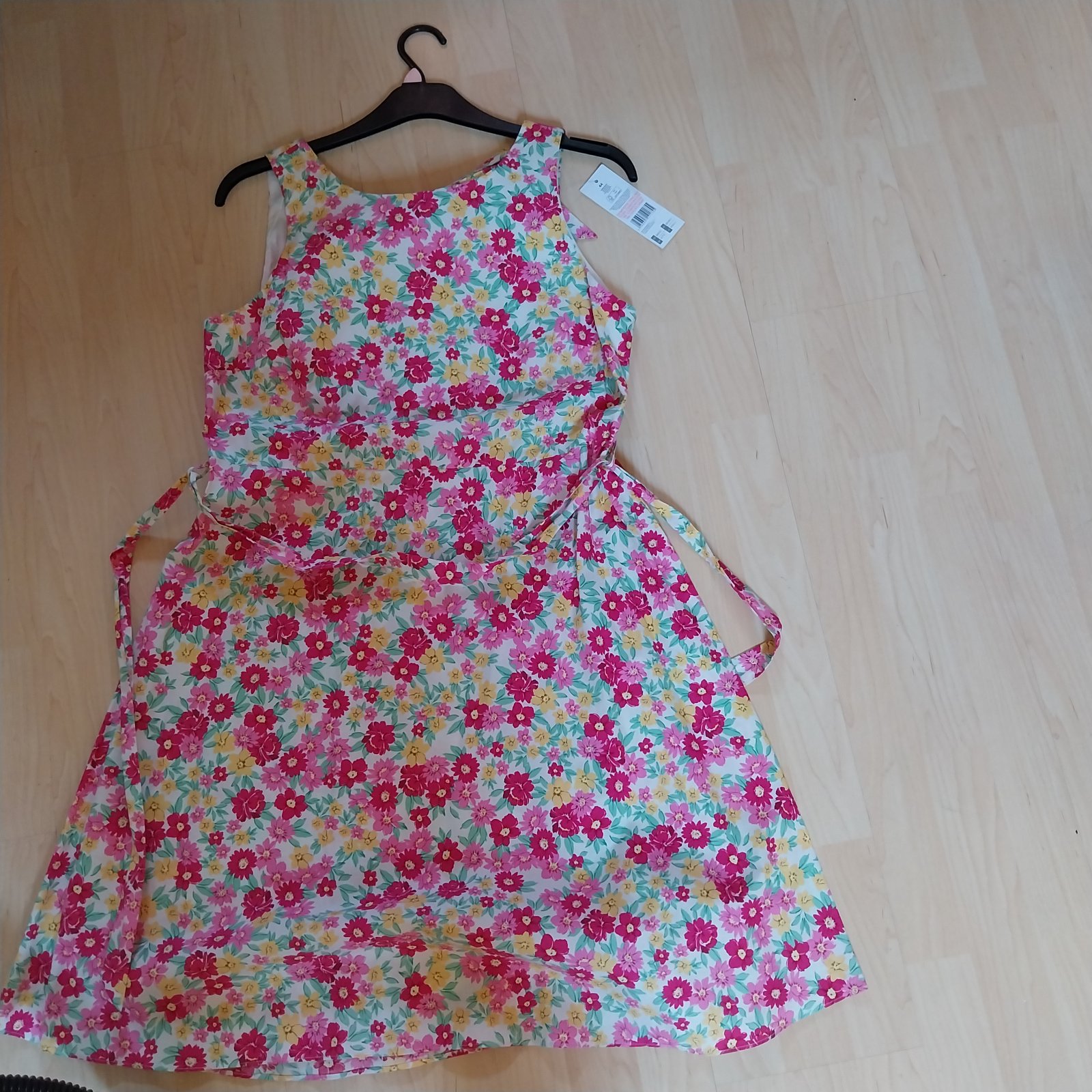 Nenosené ,nové , šaty môžu byť aj pre väčšie aj pre menšie číslo, sú voľné , Ačkový strih, dajú sa zviazať opaskom.