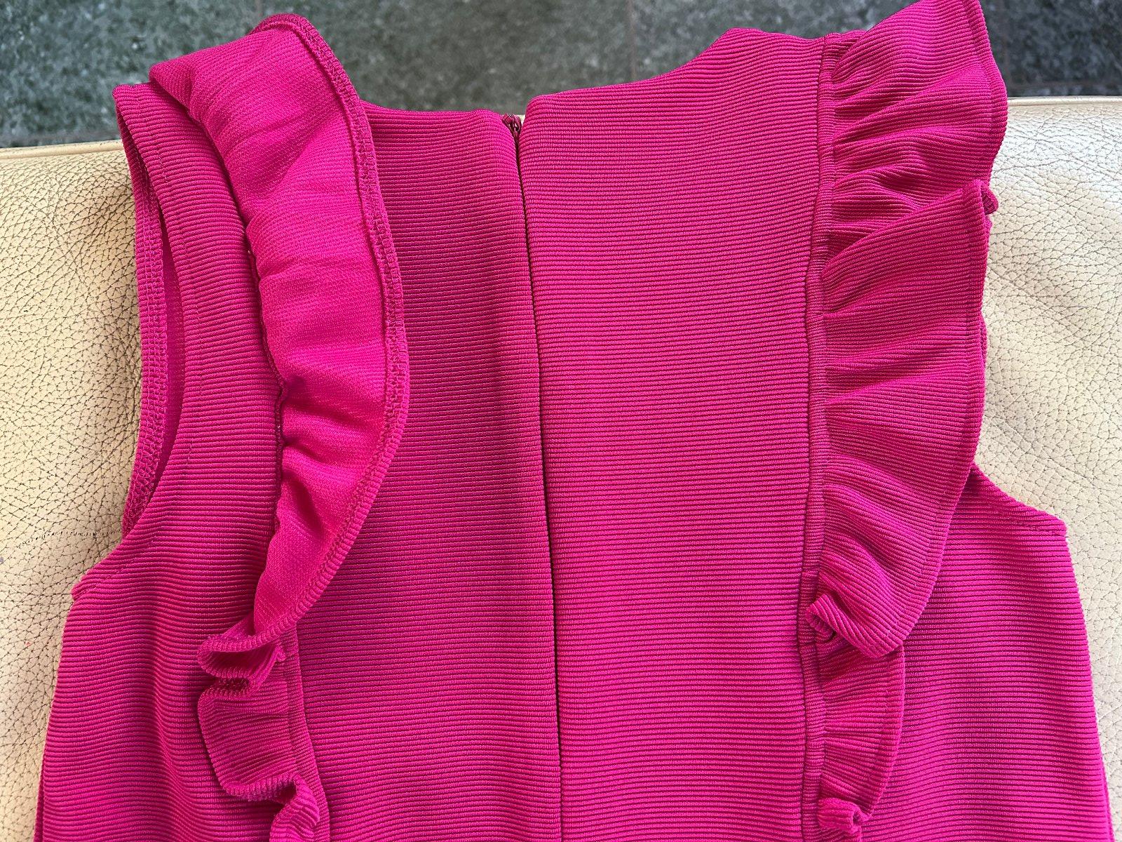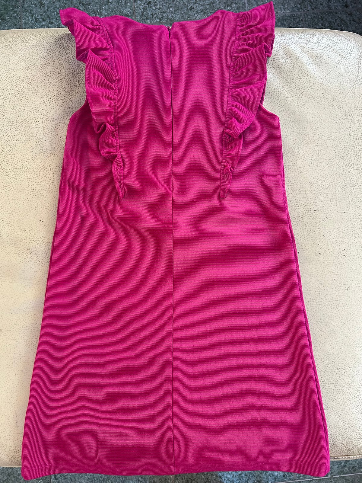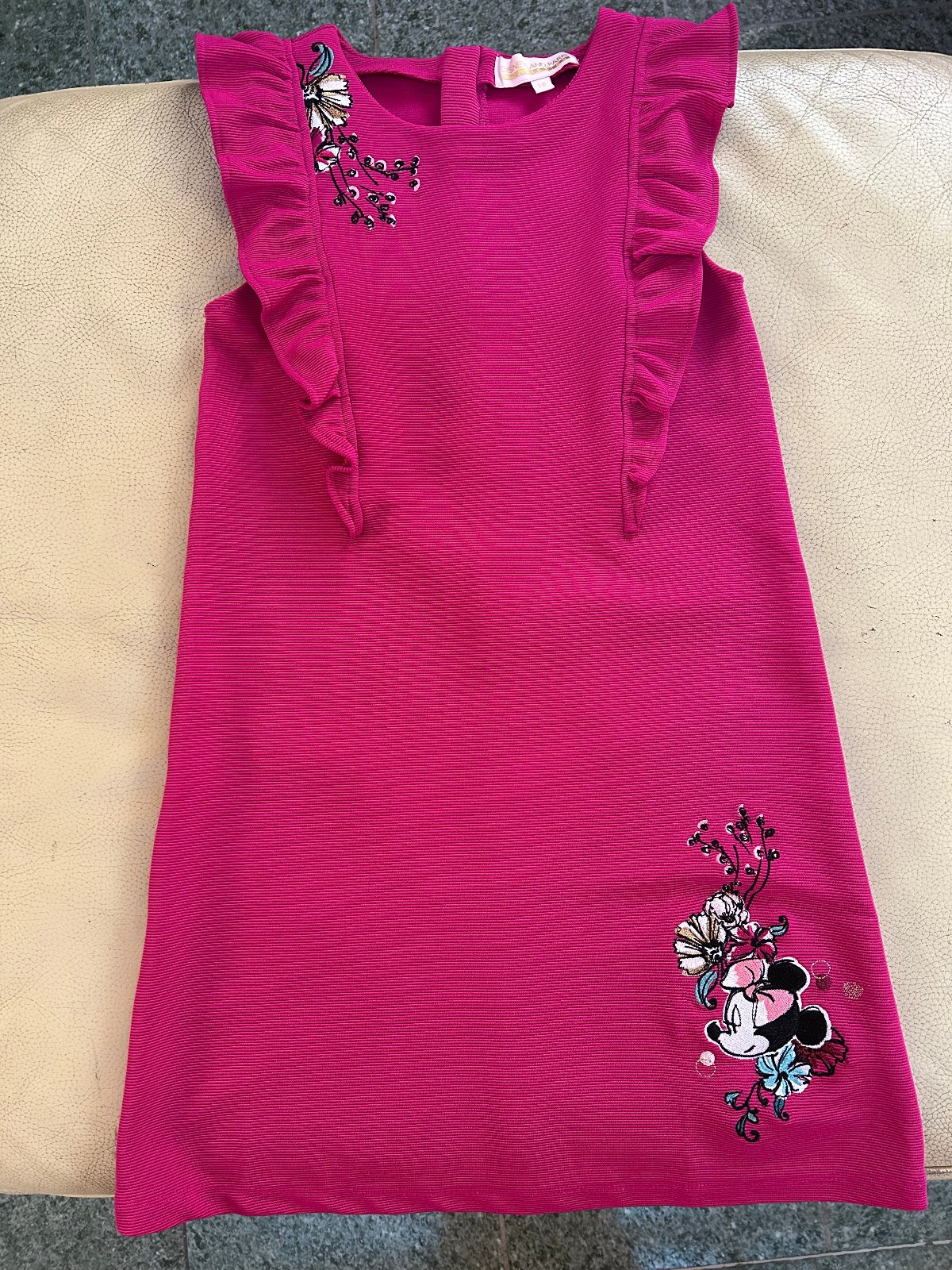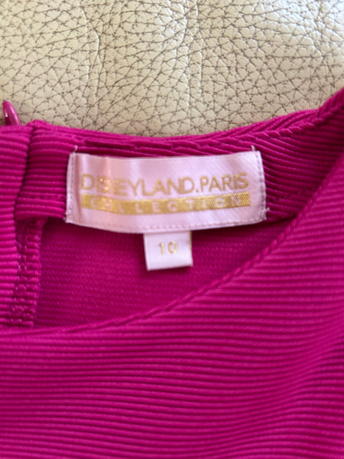 Predám nosené originál s Disneylandu Paris dievčenské fuchsiové šaty s volátikovým rukávom. Kvalitný materiál 98 polyester, 2% viskóza. Veľkosť 146, 10 r. Dĺžka šiat je 74 cm, šírka cez prsia 34 cm, dĺžka rukáva od ramena po pazuchu 18 cm. Šaty sú bez roztrhania a iného poškodenia, vyzerajú ako nové. V cene nie je zahrnuté poštovné.