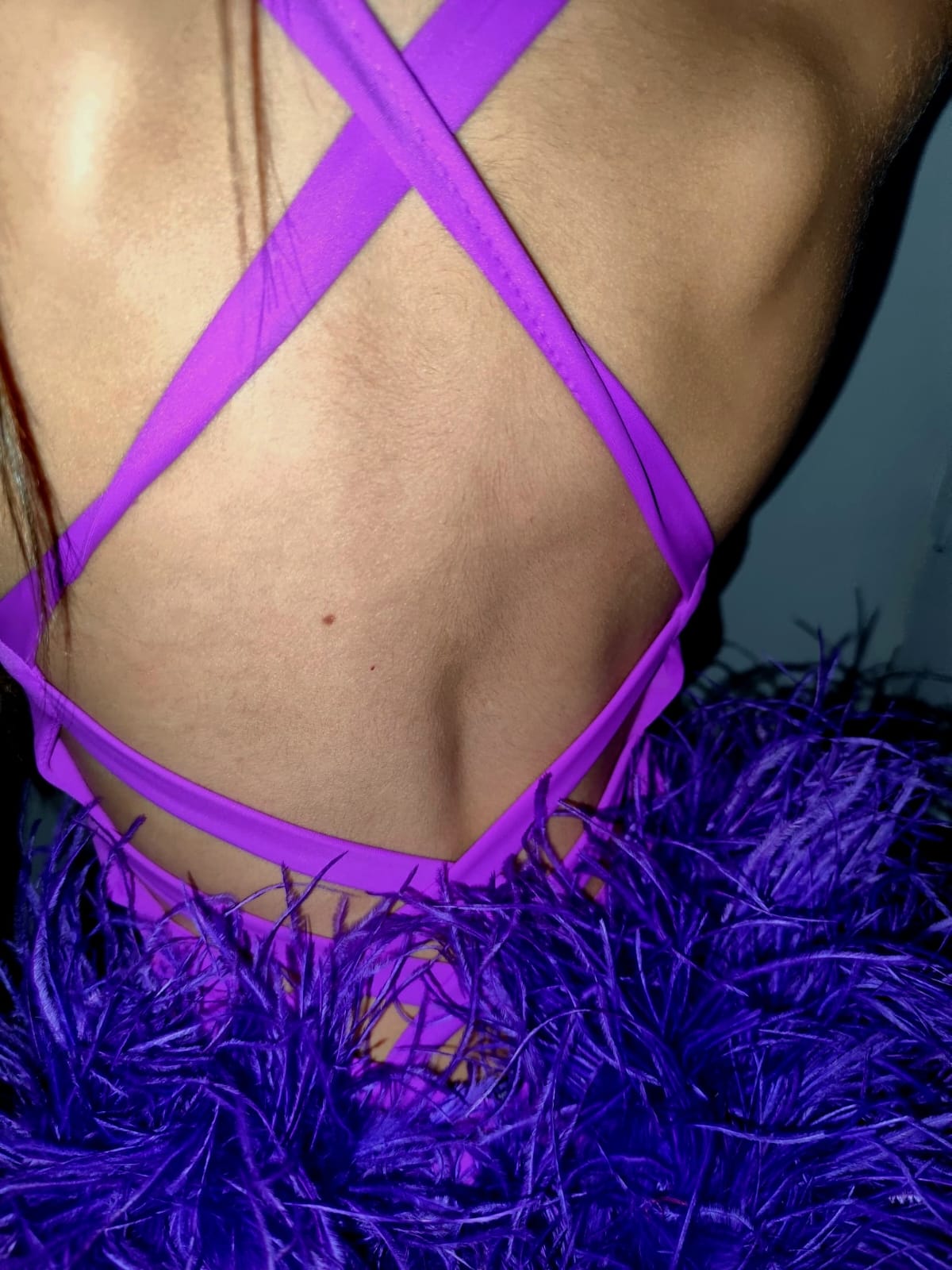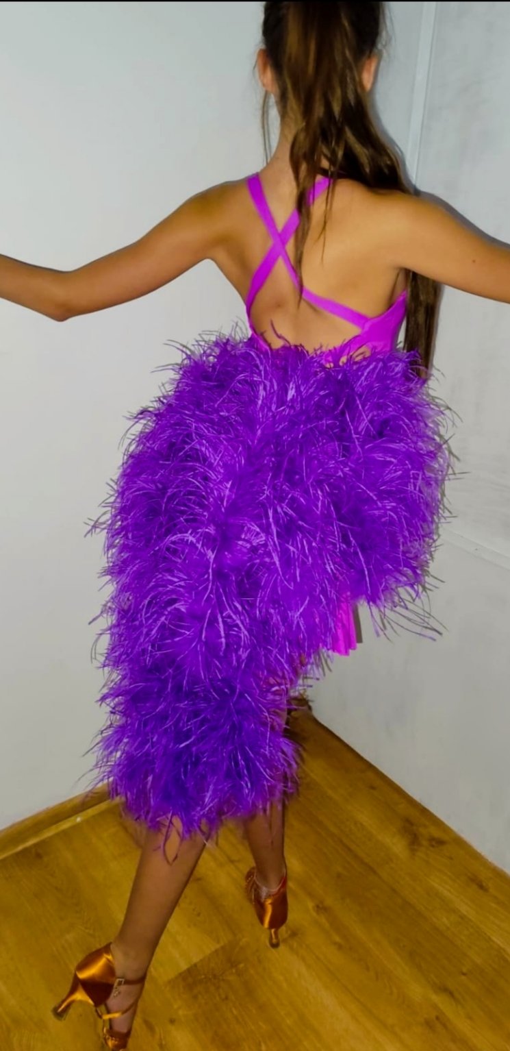 latino saty pouzite na 1 na sutazi vhodne pre kategoriu od junior 1 nakoľko nie su zdobené, prípadne si viete nechat dozdobit kamienkami do vyssej kategorie. Velkost 152-158 pre stihlu tanecnicu. Vsite nohavicky-body. Chvost zo pstrosieho peria kupovaneho z Viktoria Kral, site na mieru, prva majitelka, posúvame za cenu 450€