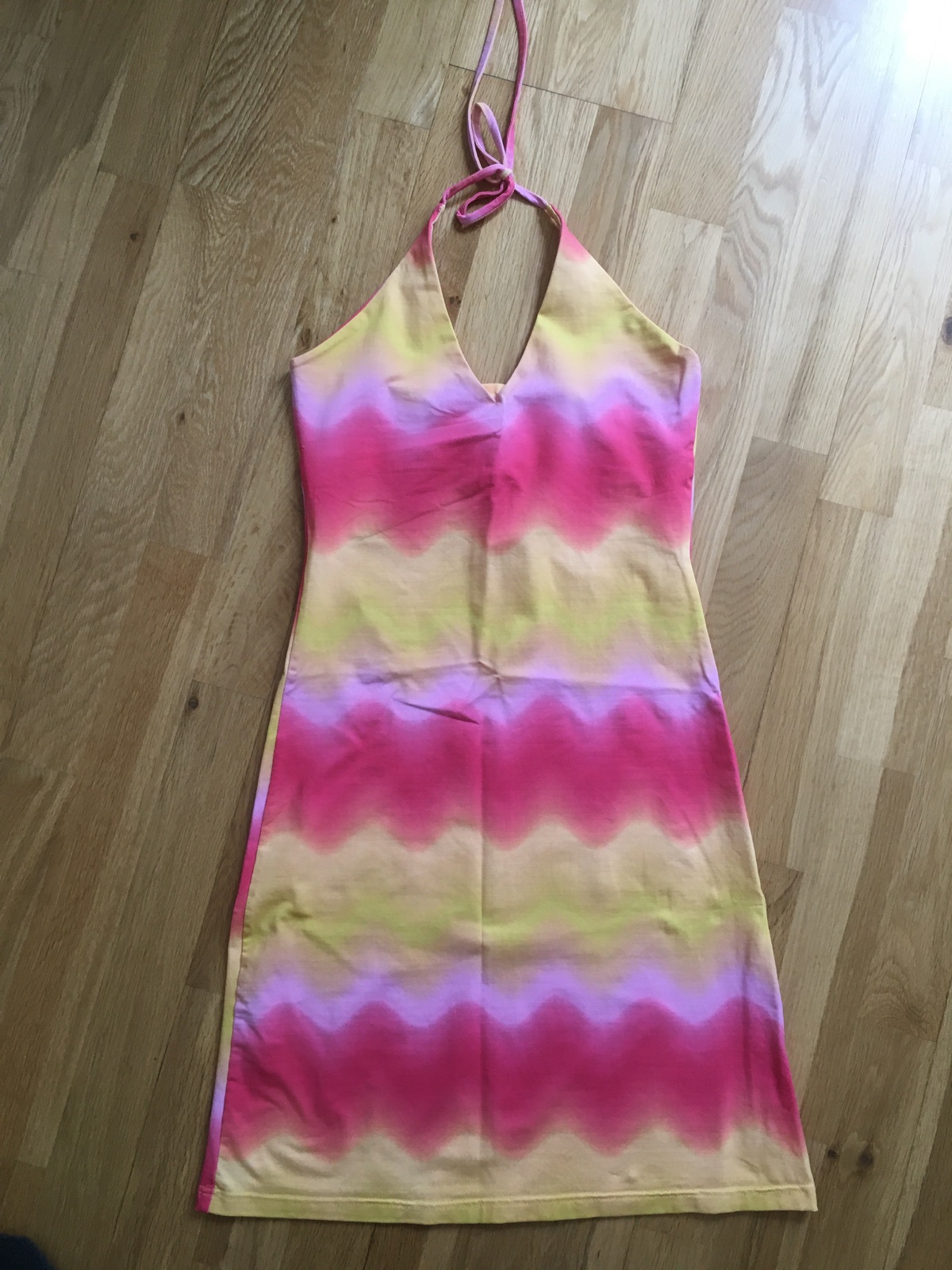 Elastické šaty veľkosť S, šírka 34cm v klude, dĺžka 82cm meraná od krku. Cena 5€