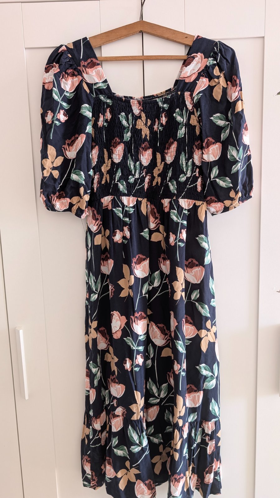 Dvakrát oblečené, pod kolená, cez hrudník gumičky, prispôsobia sa, príjemný materiál viskóza, veľmi pekné, nič im nechýba, len som si ich nejako neobľubila.