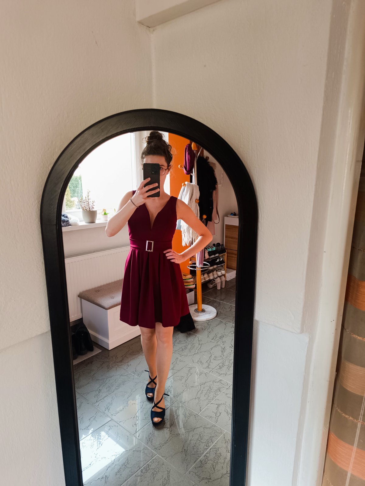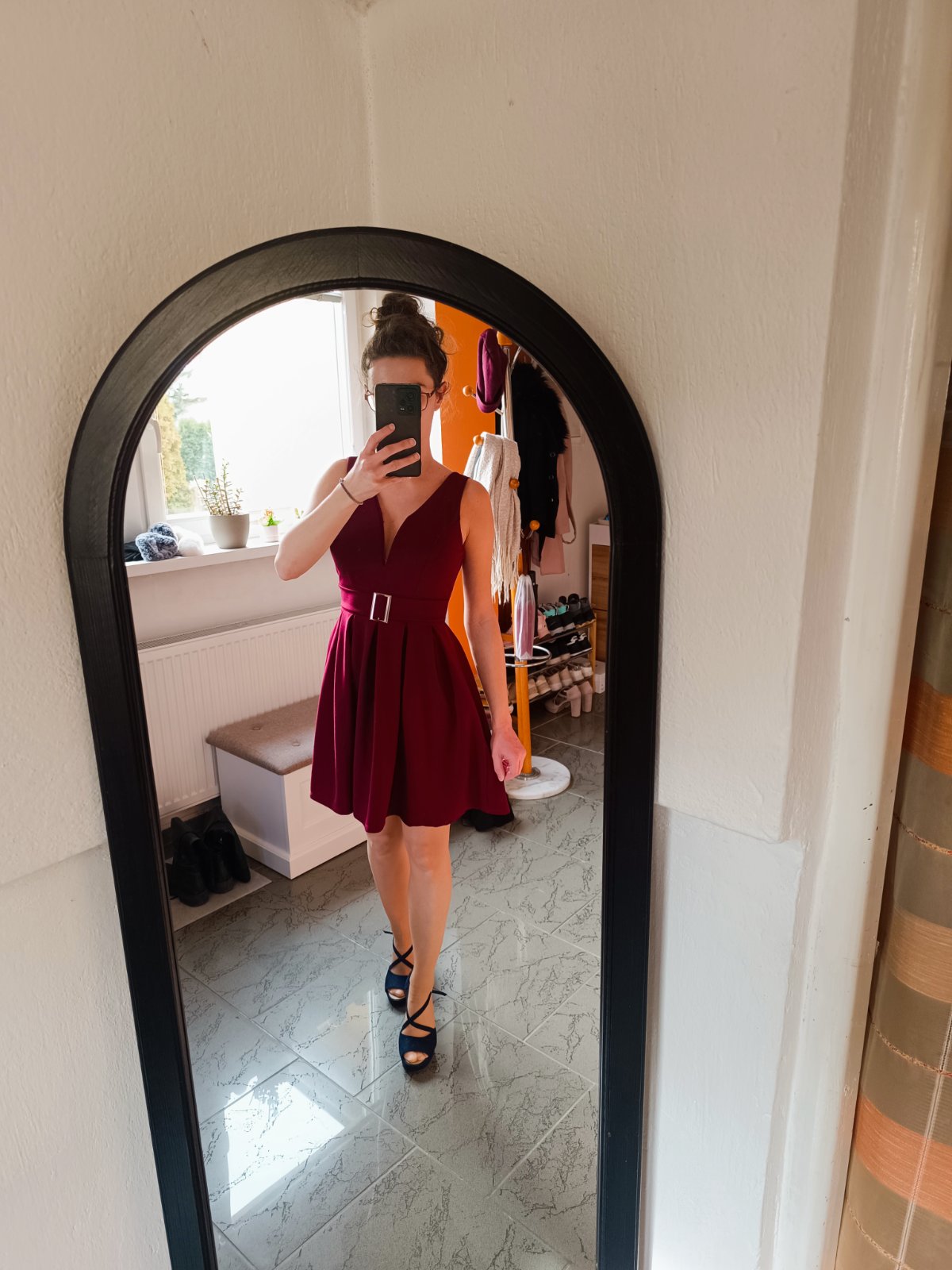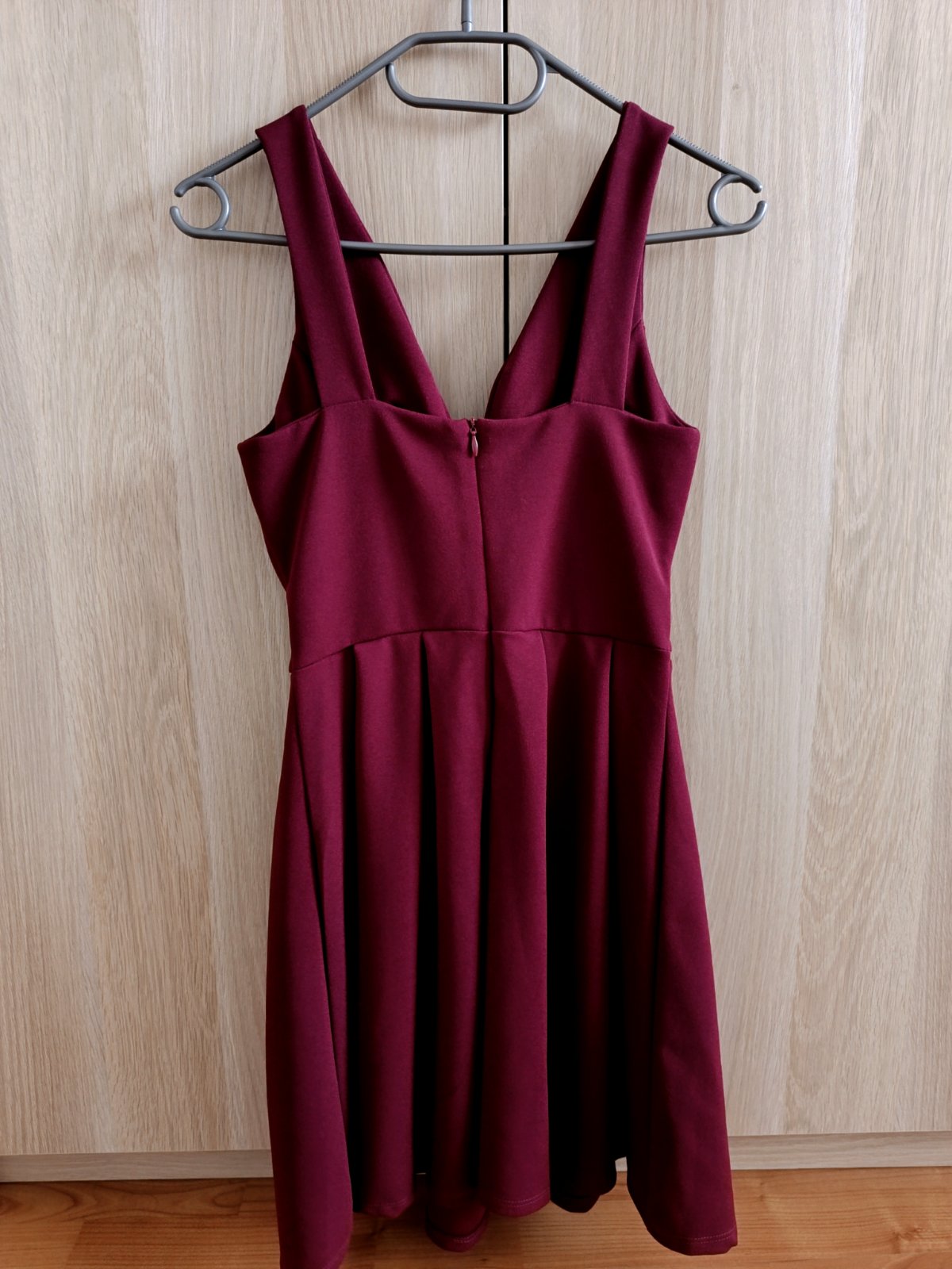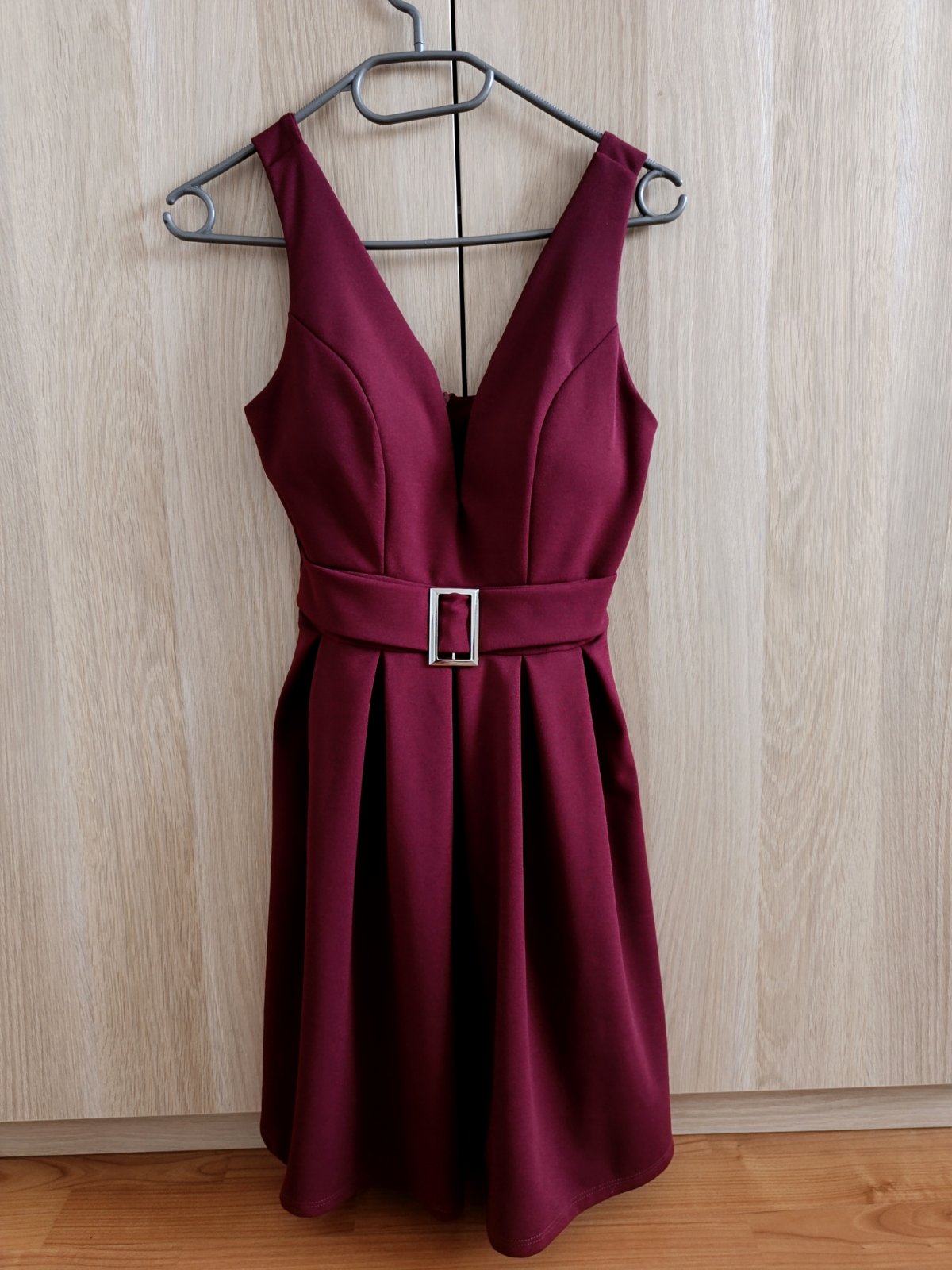 Šaty sú v top stave, raz oblečené. Elastické, vhodné pre štíhlu postavu. Kopírujú tvar postavy.Veľkosť je 32/34. Majú ružovo- bordovú farbu.
