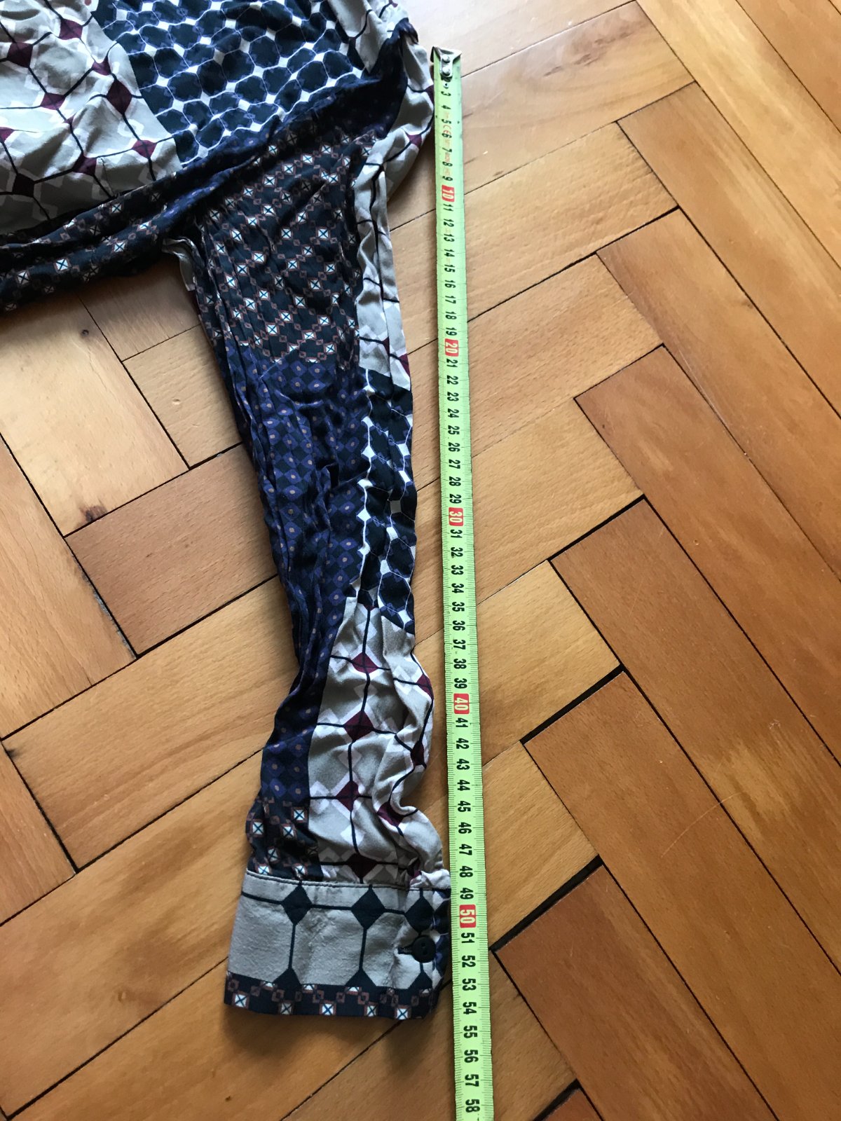dĺžka- 86cm, šírka pod pazuchou- 46x2cm,dĺžka rukáva od krku: 55cm, dĺžka vnútorného rukáva: 39cm, pás - 49x2cm, boky-56x2cm