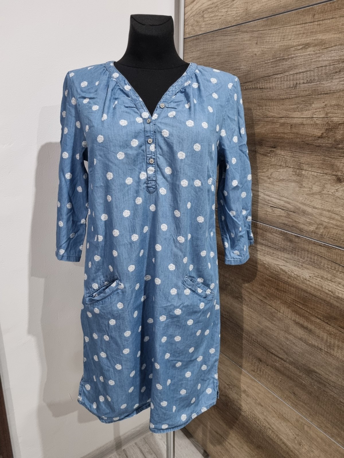 Pohodlné košeľové šaty. Majú véčkový výstrih so zapínaním na gombíky a praktické vrecká na prednej strane.