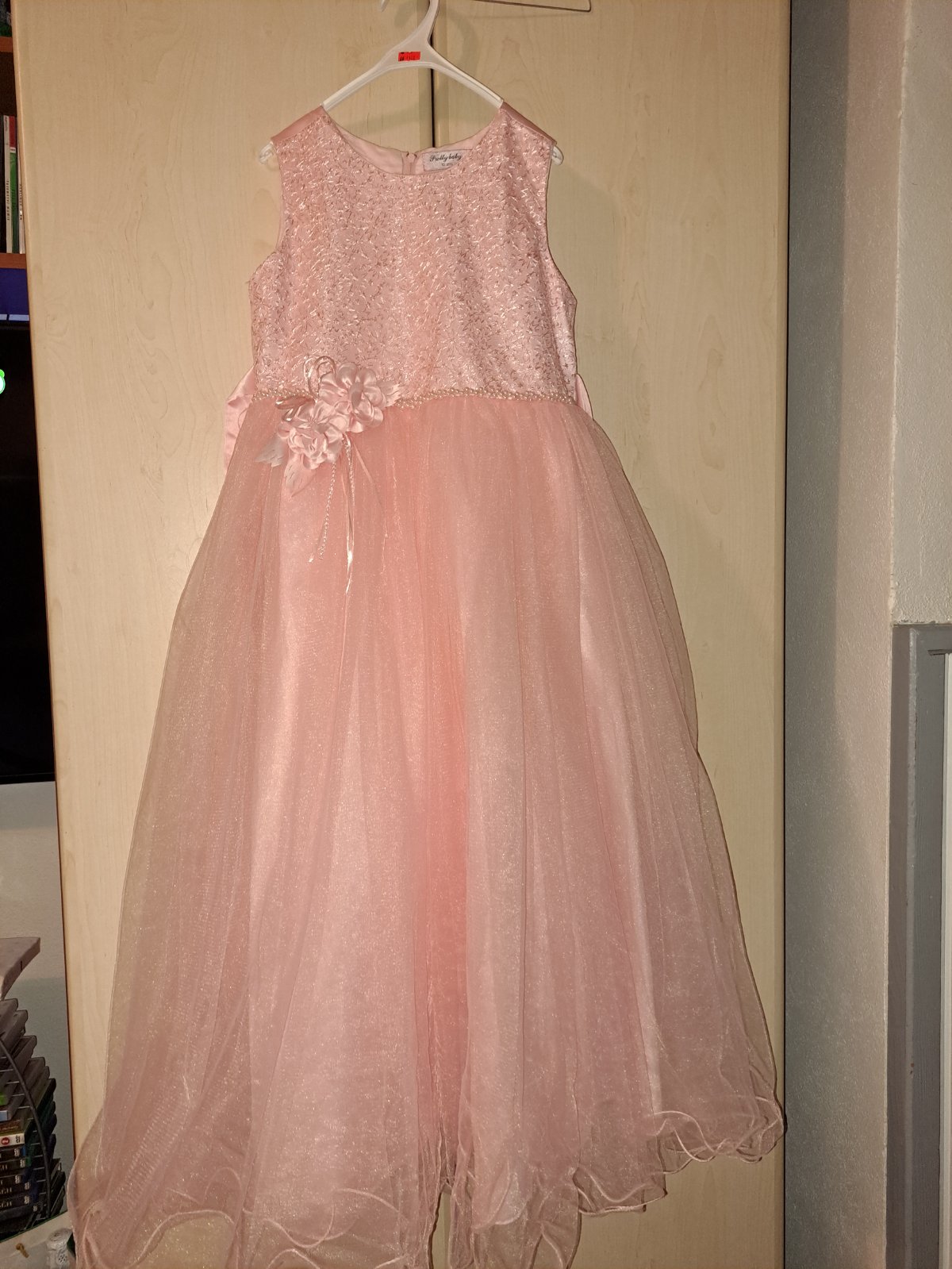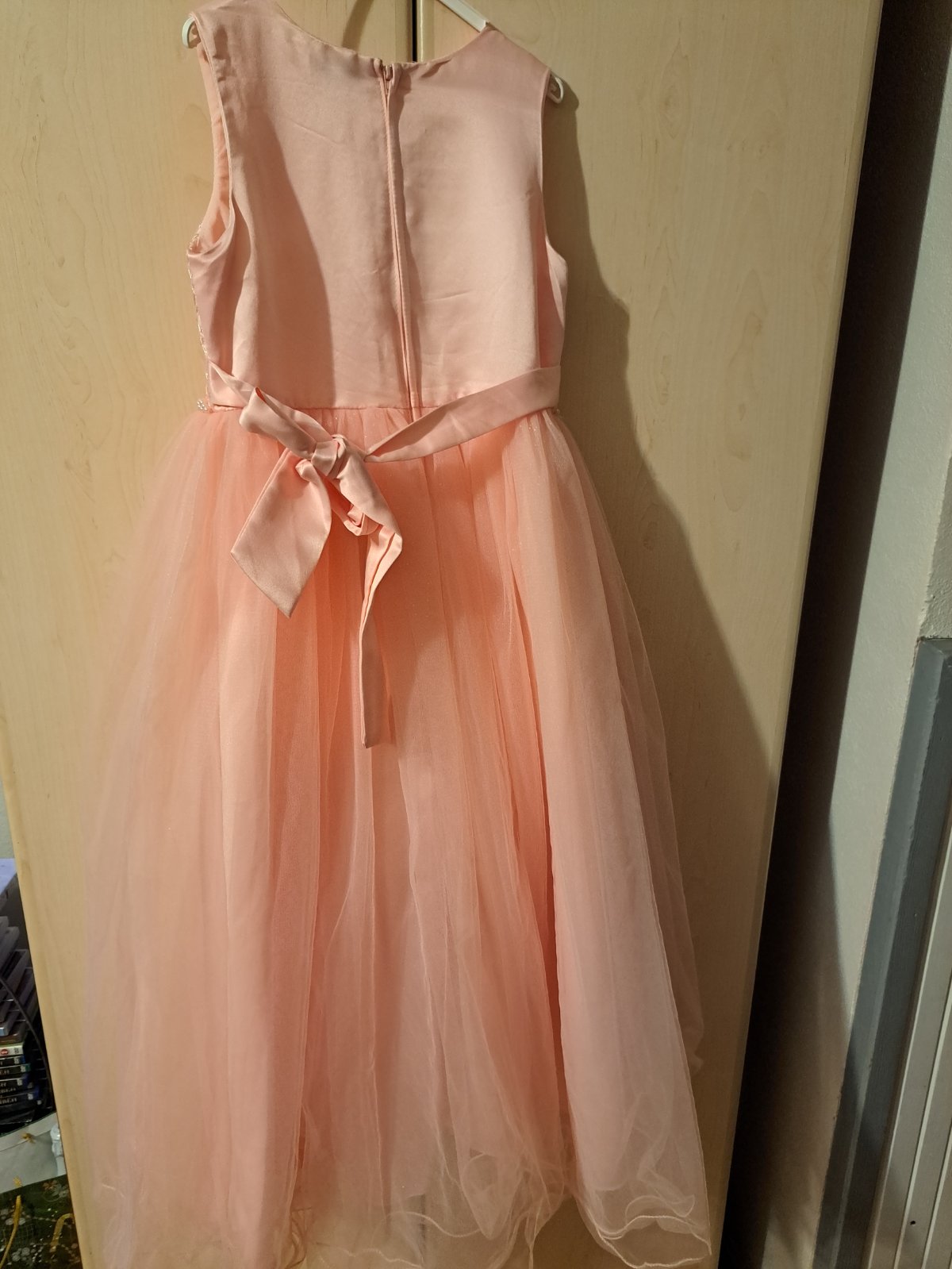 2x oblečené spoločenské šaty s nadýchanou sukňou, jediná chyba je že dole vychádza žilka ktorá tvaruje volaniky z tylu. Kupované v Polsku za 40 eur. Velkostbuveden a10 rokov, cca 140
