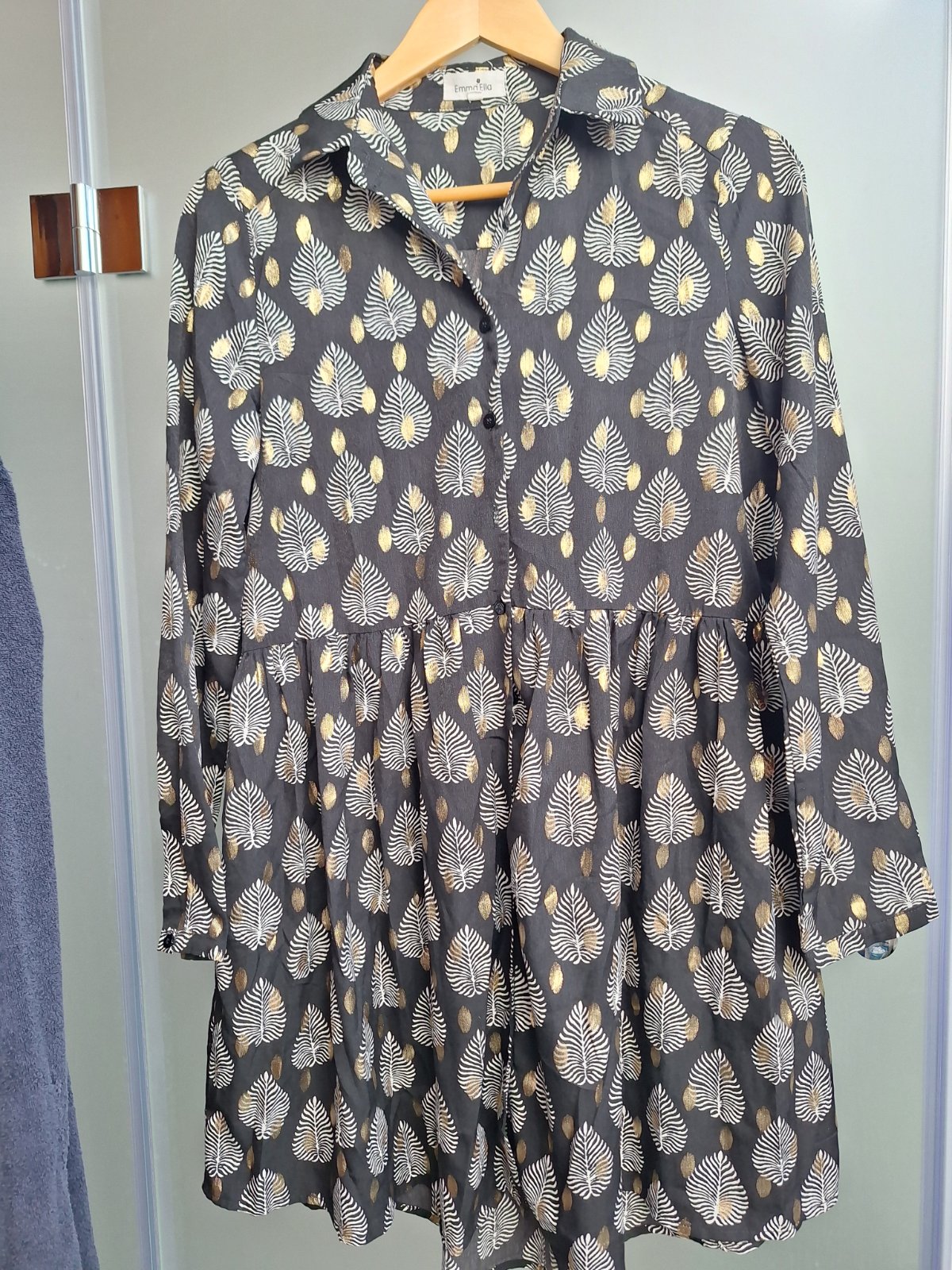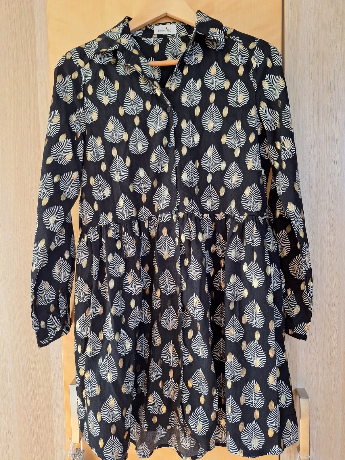 Ponúkam nenosené lahke letne vzdušné šaty kvalitne prevedenie zn. Emma&Ella. Kombinácia zlatej a bielej na čiernom podklade vyznieva štýlovo.
