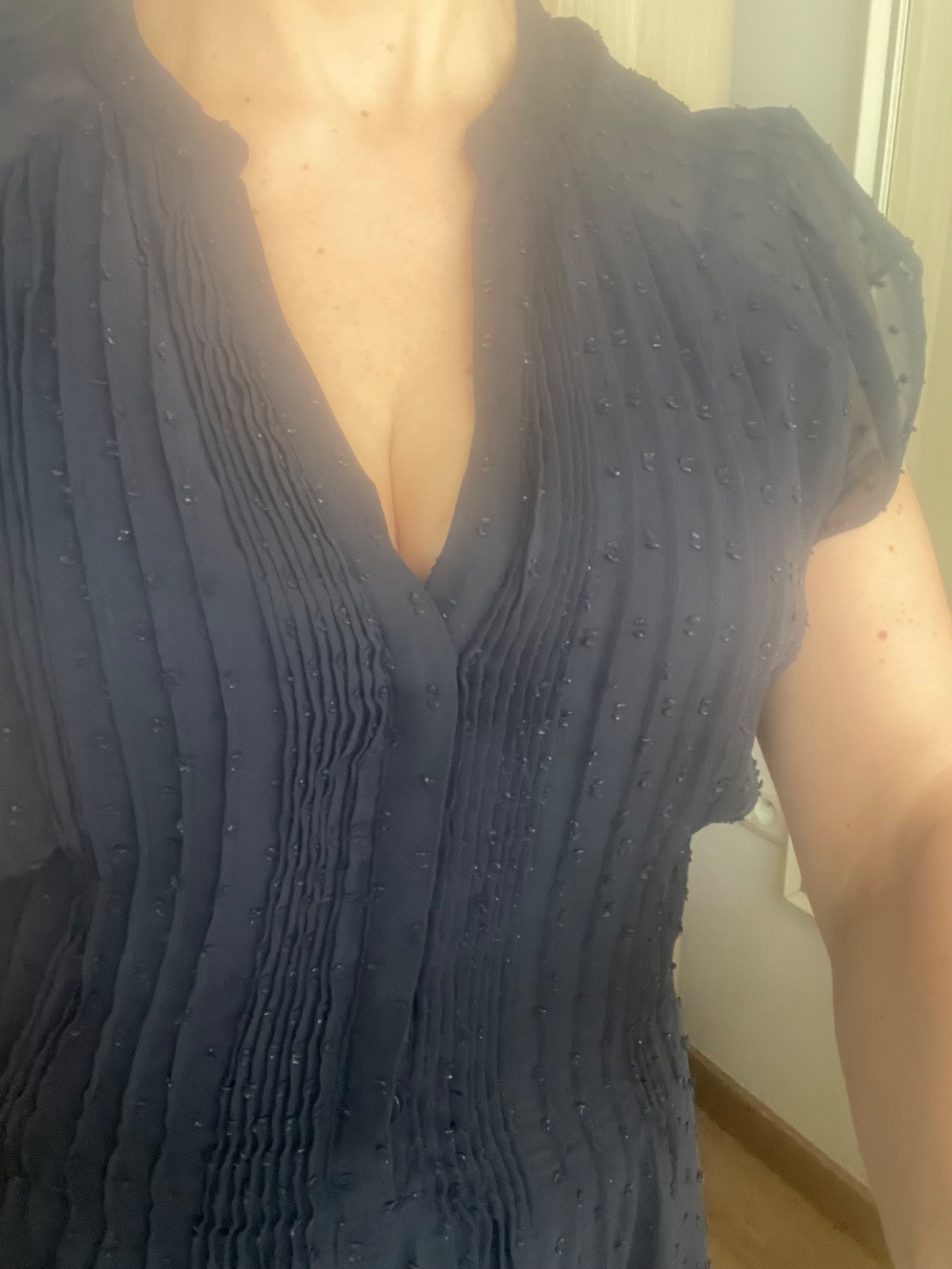 100% stav, žiadne stopy nosenia. Vrch (kde sa nachádza podprsenka) je podšitý čiernou látkou. Nie sú priesvitné. Zakončenie rukávov je zvonové. Po stranách rozparky, vzadu na krku zapínanie na g...