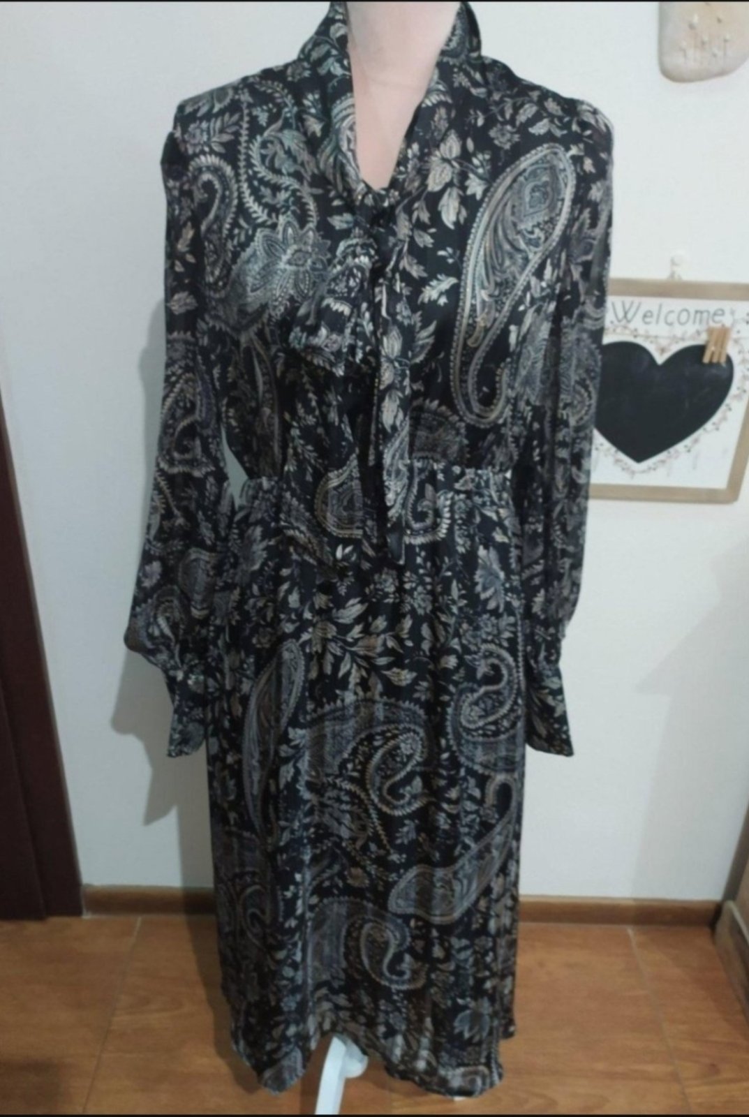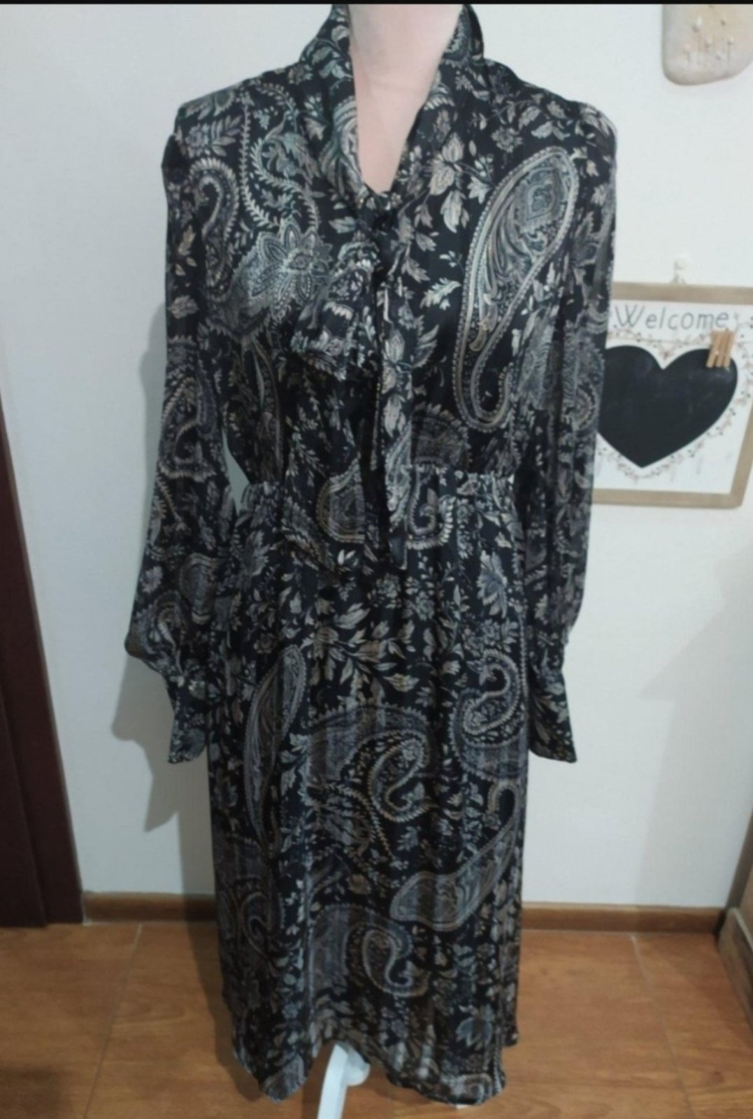 H&M karovane saty, velkost 38, viskoza, rozmery d. 125cm, s. 2x 38,5cm, dl.rukava 61,5cm