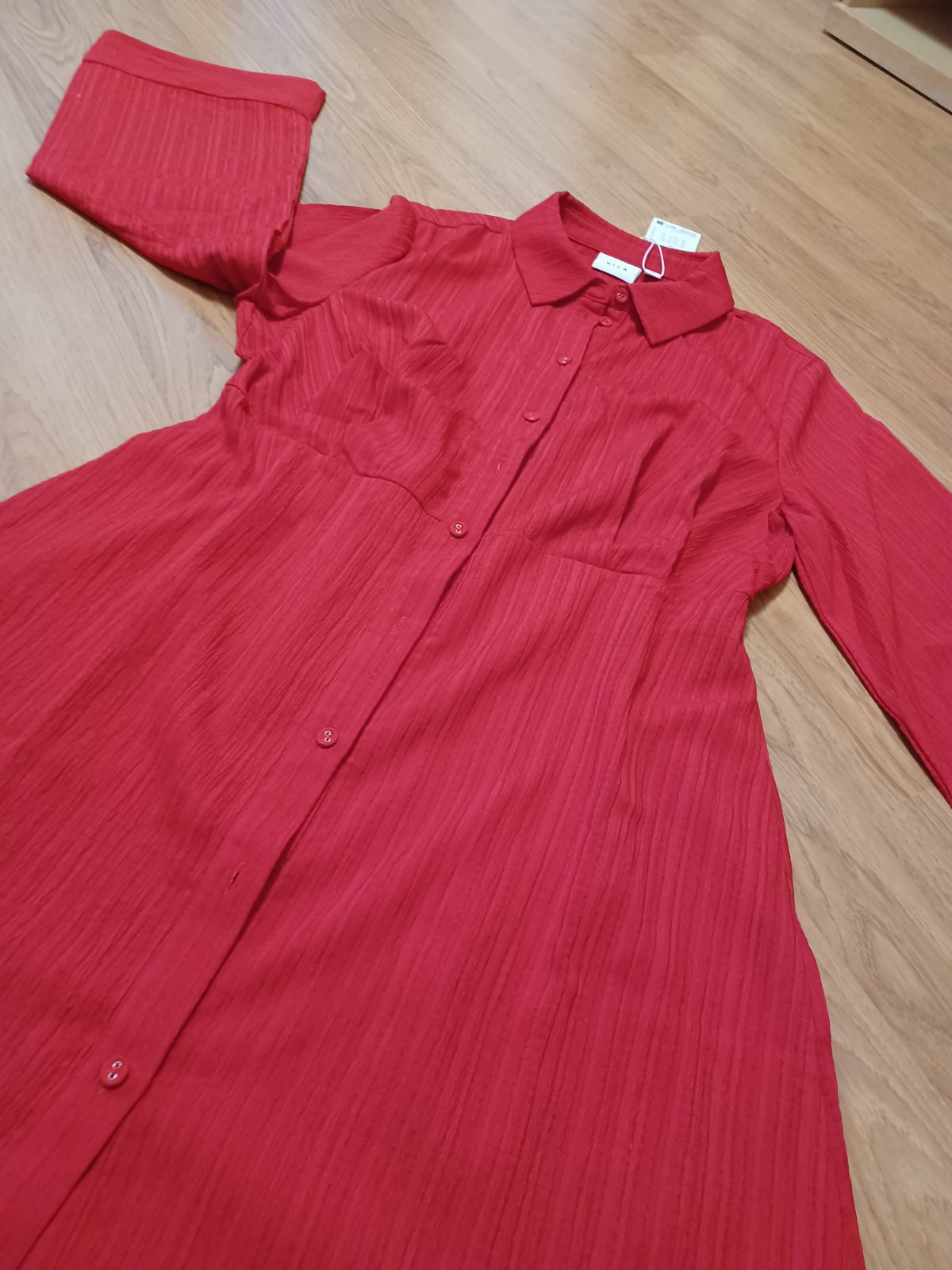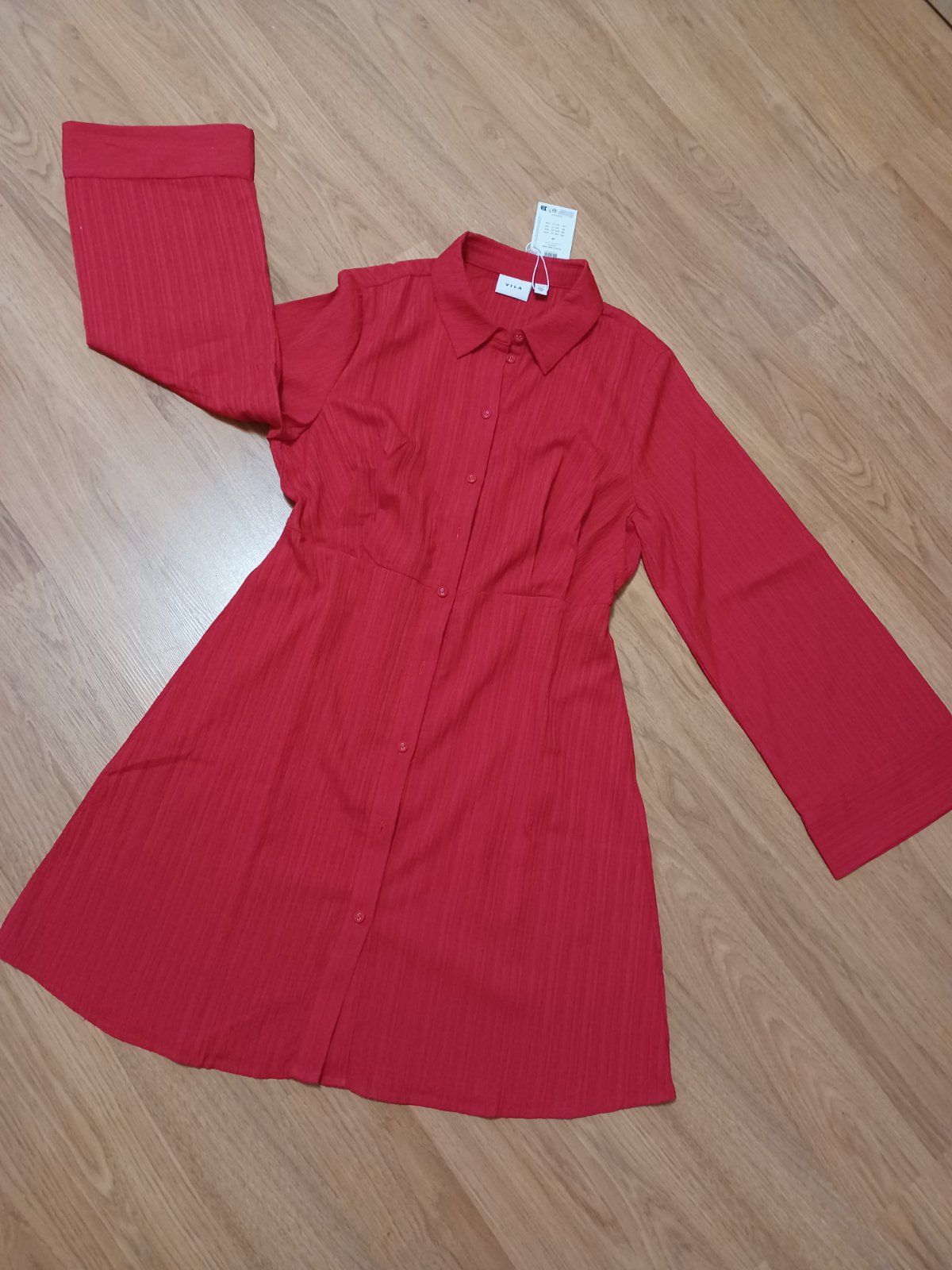 Pekné červené šaty so sirokymi rukavmi, nenosené, este s visackou.