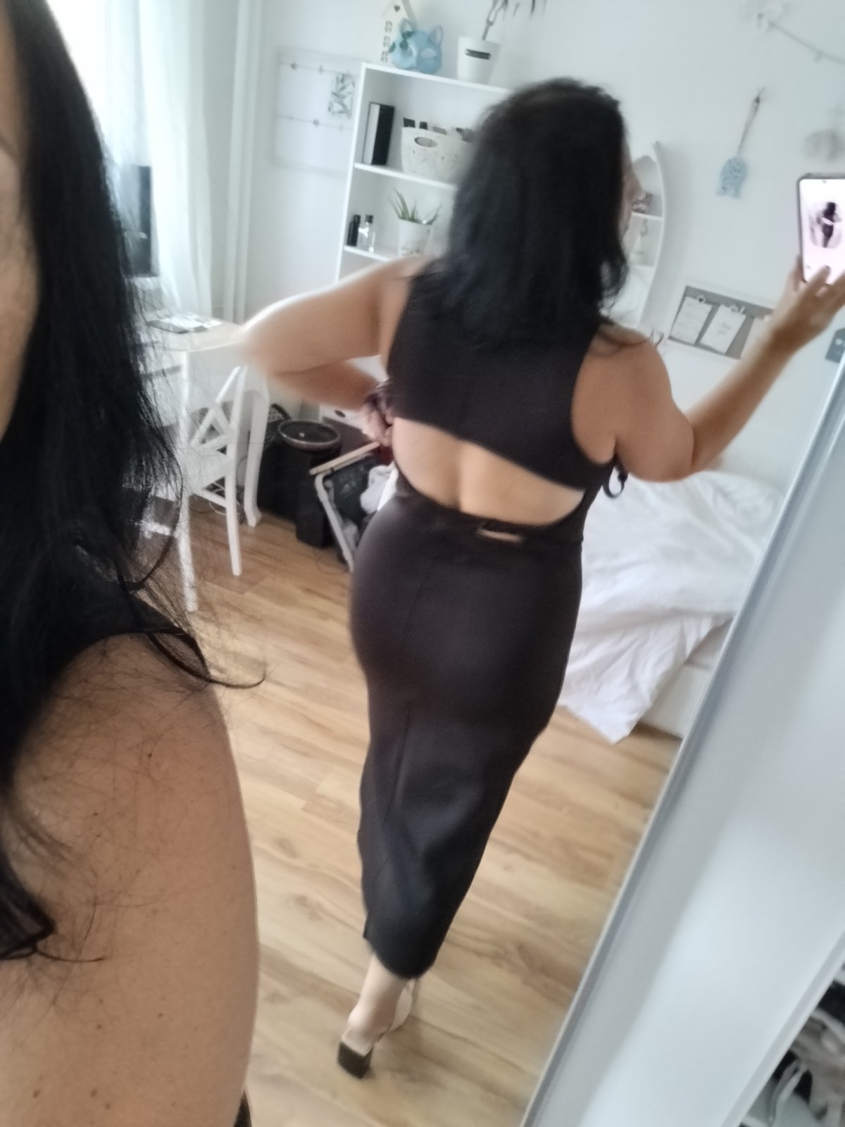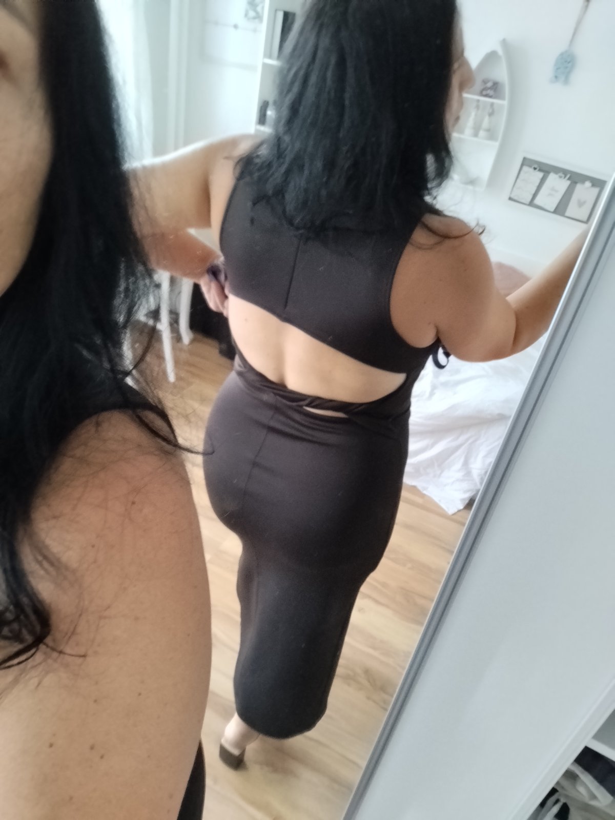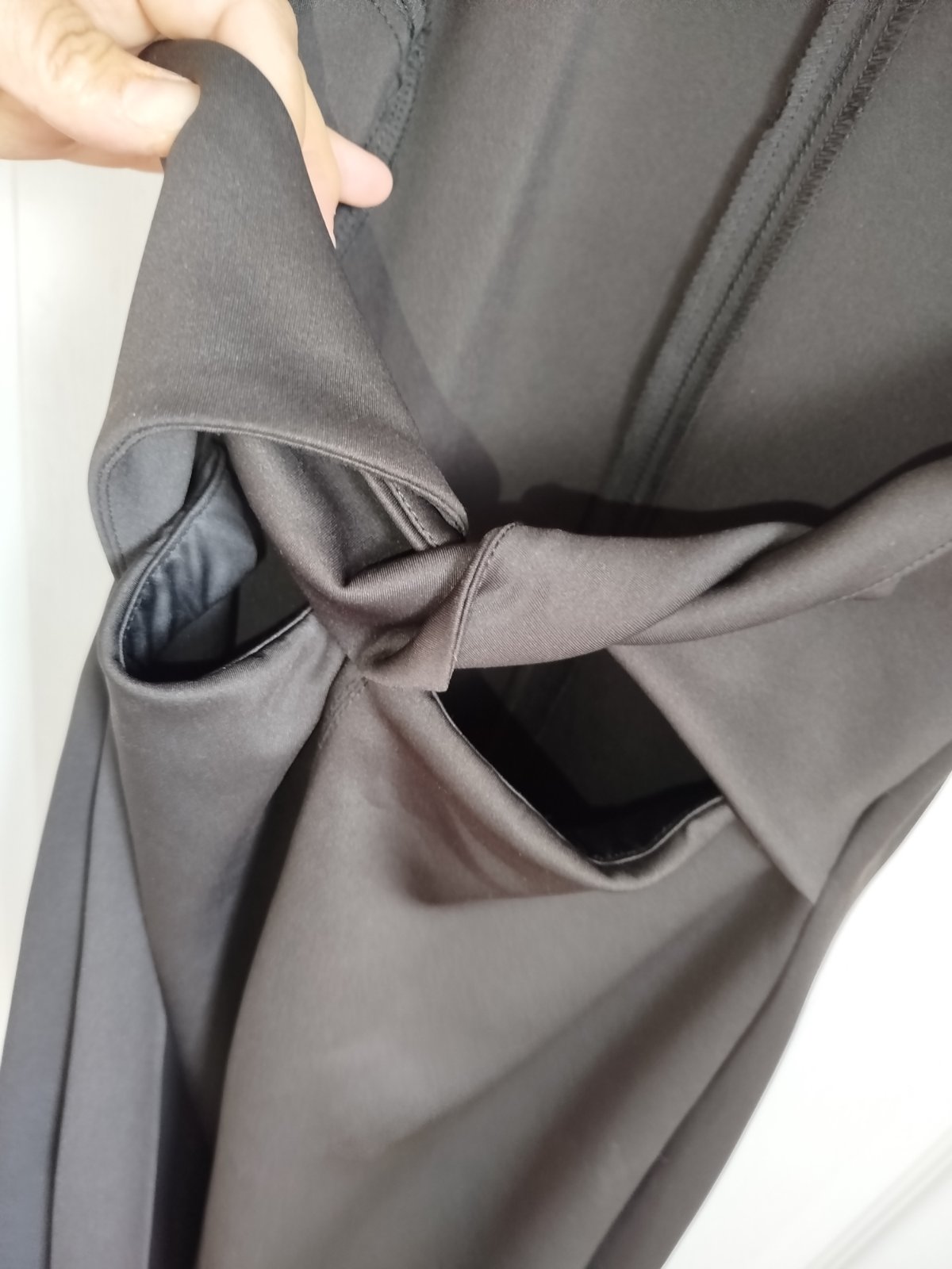 Neoprénové obtiahnuté šaty vredu rázporok vzadu otvorený chrbát a zaujímavé riešenie su pružné prispôsobia sa stredne hrubé, dĺžka v kľude 134cm šírka pod pazuchami v kľude 48x2cm povolía 60x2cm