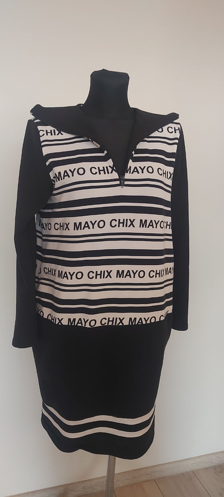 Iba 1x na sebe, ako nove, pekne tvaruju postavu vdaka riaseniu, kvalitny hrubsi elasticky material, luxusna kvalitna znacka Sirka v podpazi v kludnom stave je 49cm, pas 40cm, dlzka 97cm
