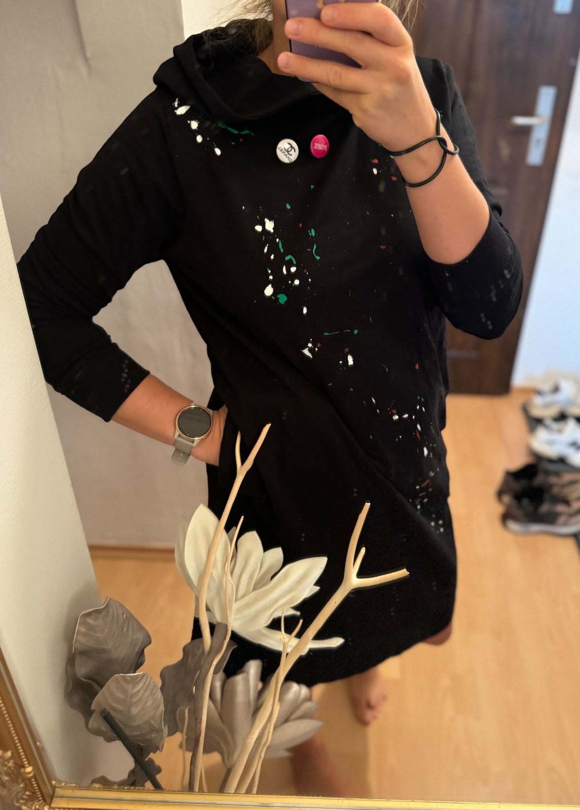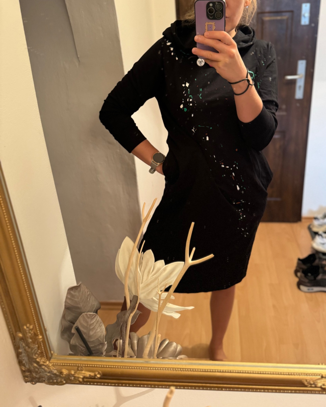 Teplakove saty bez poskodenia znacka Mazine .vel.s Flaky nie su na nich ,fotak zle odfotil😉