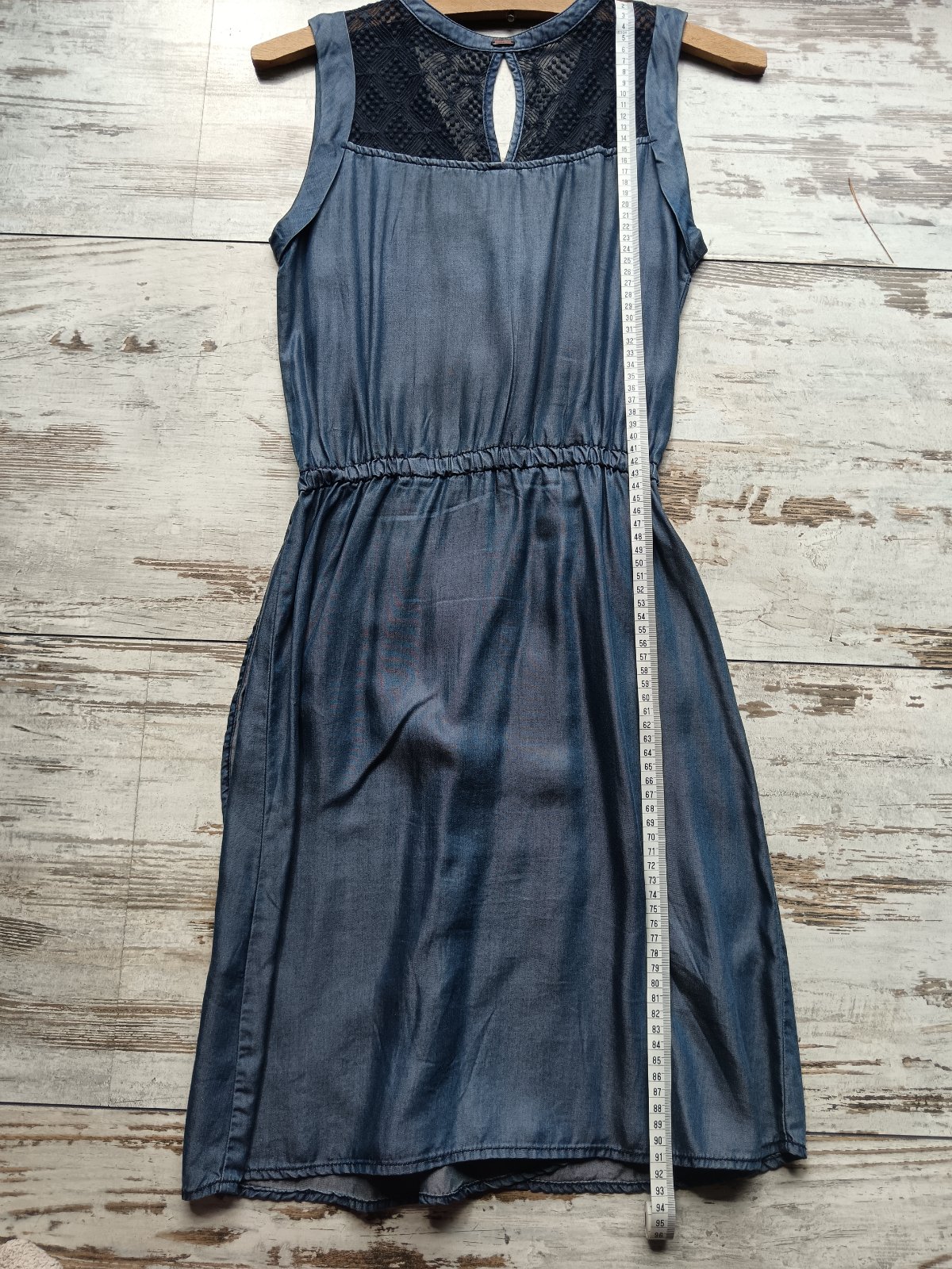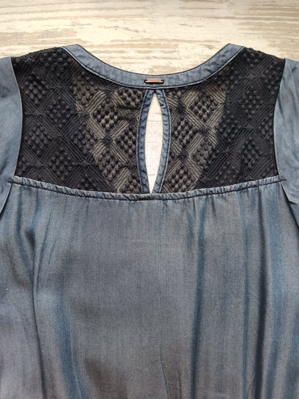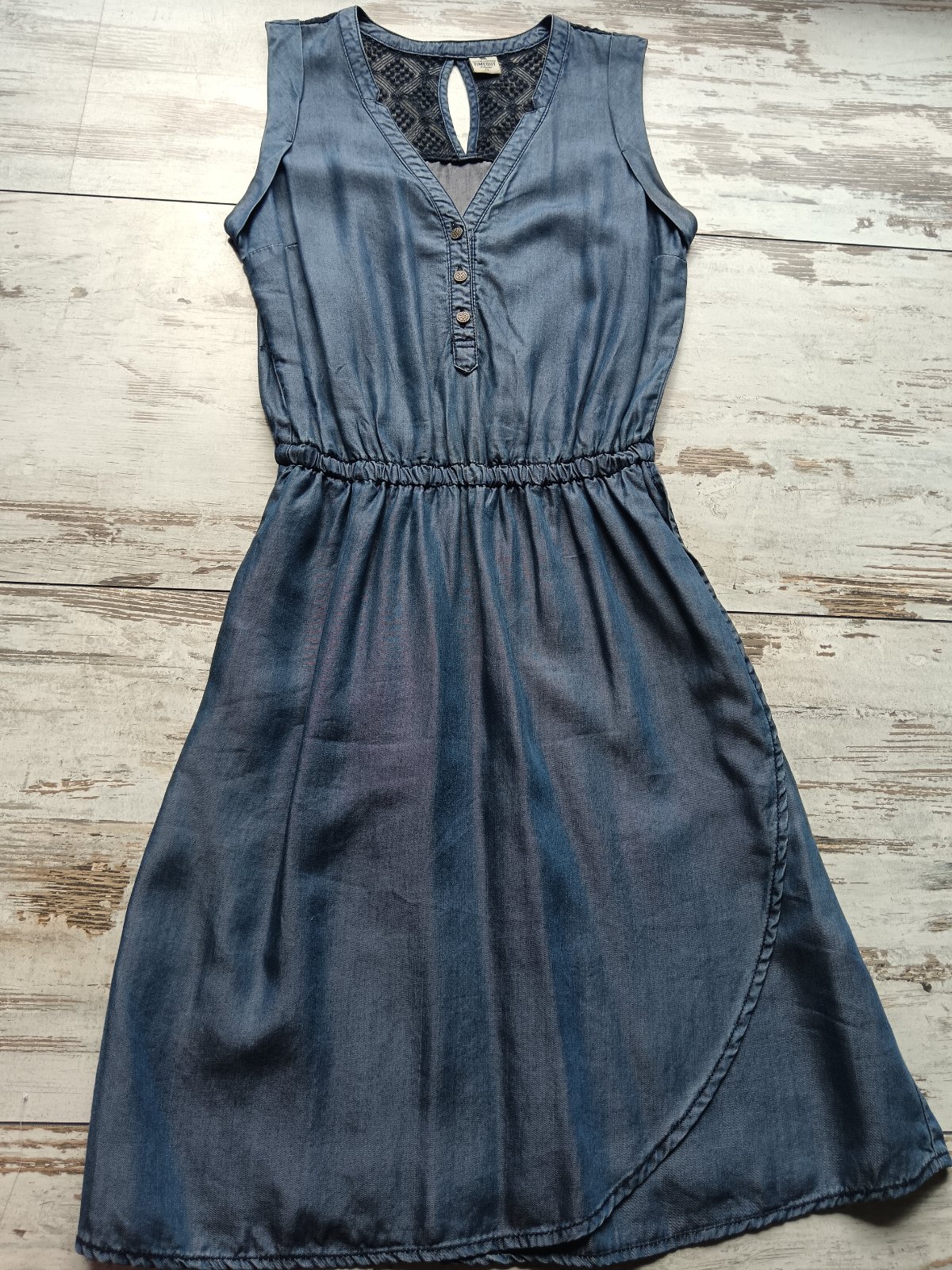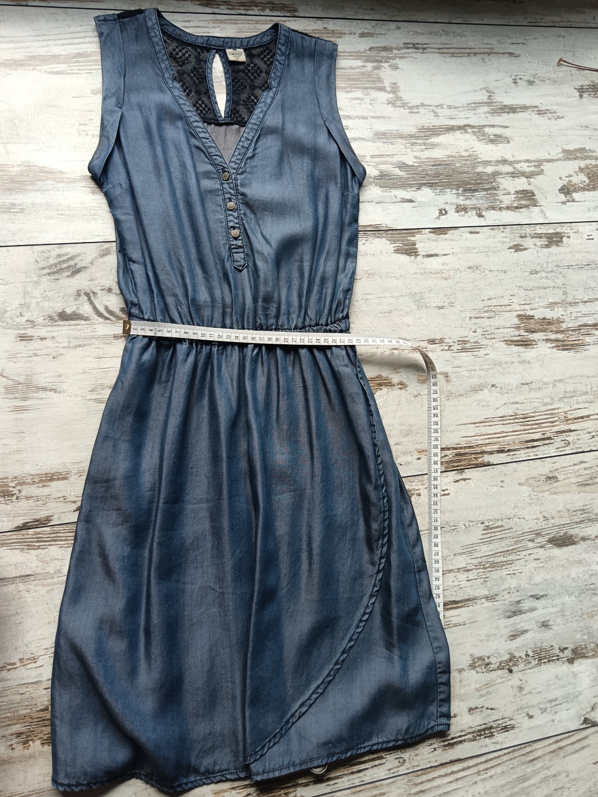 Dámske šaty sú značky Timeout, vyrobené z ľahkého džínsového materiálu s čipkovaným detailom na zadnej strane a gombíkmi na hrudníku. Veľmi pohodlné na leto