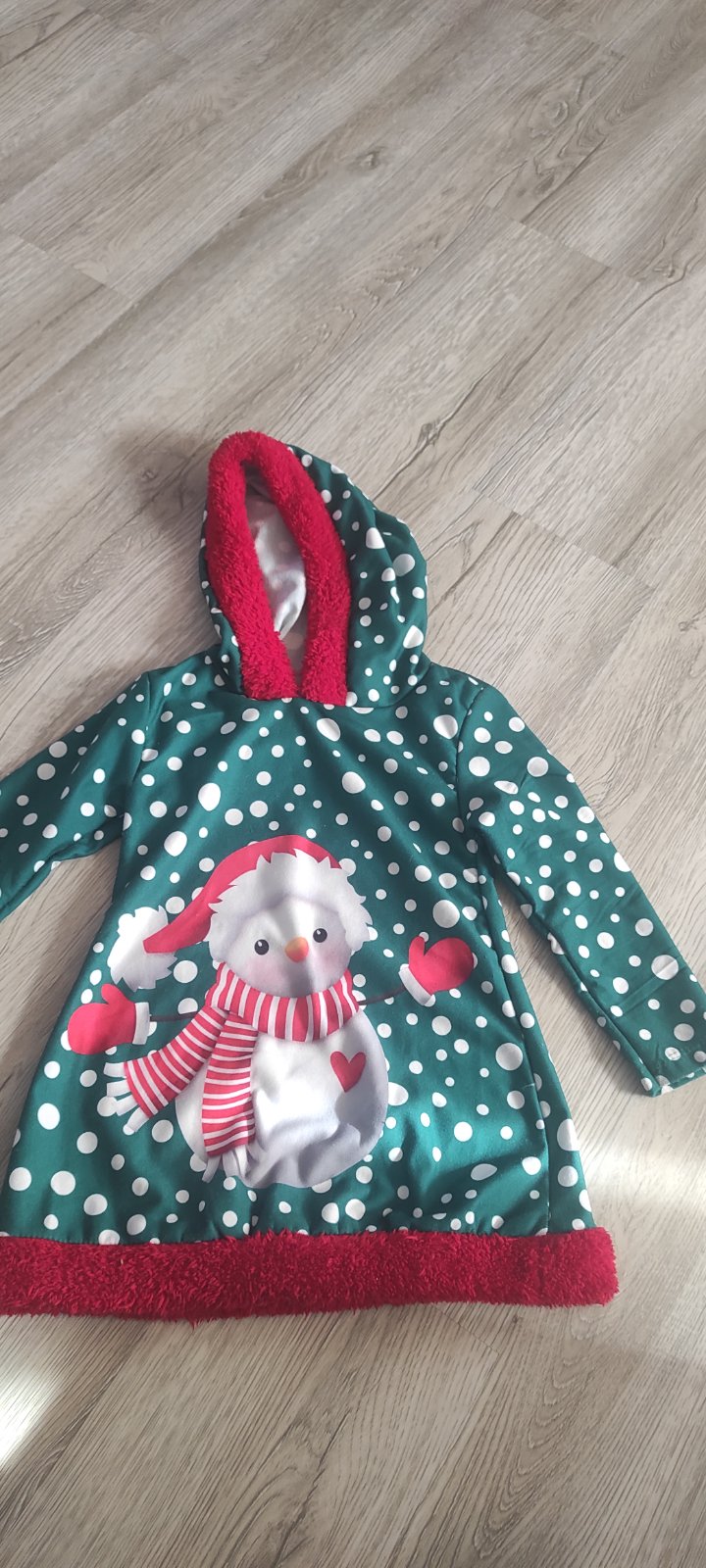 Krasne sviatocne saty a leginy. Vhodne na vianocne fotenie 10p%stav.bez poskodeni Zn.Goodland Mozem zmerat Farba tmavo zelena Rukav,spodok siat lemovany striebornou nitou Vzadu na 3 gombiky