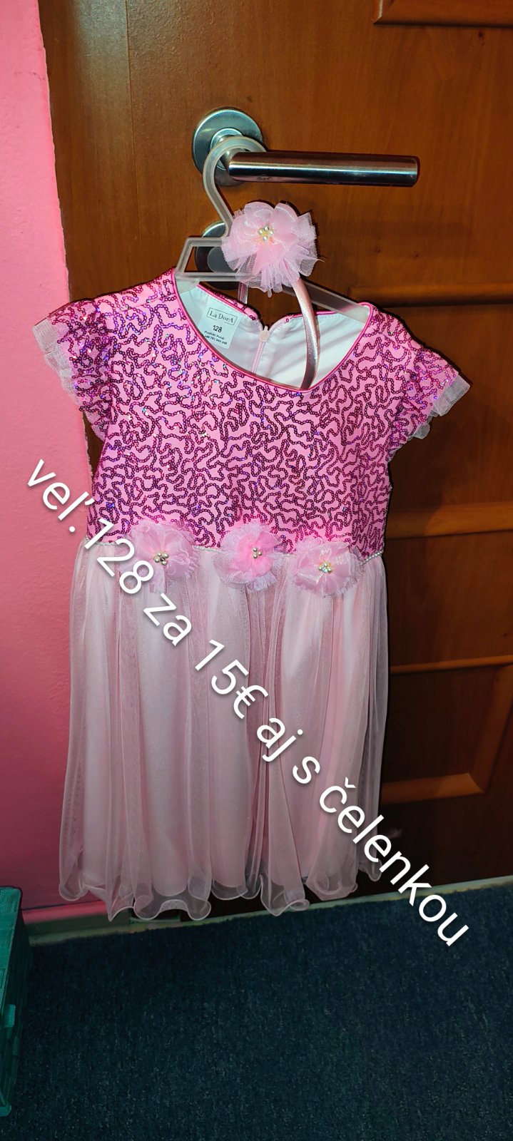 Predám spoločenské šaty s čelenkou 128 za 15€ za 1ks.Na dobierku neposielam, buď osobný odber Košice alebo packetou,peniaze na účet. V cene nie je zahrnuté poštovné.