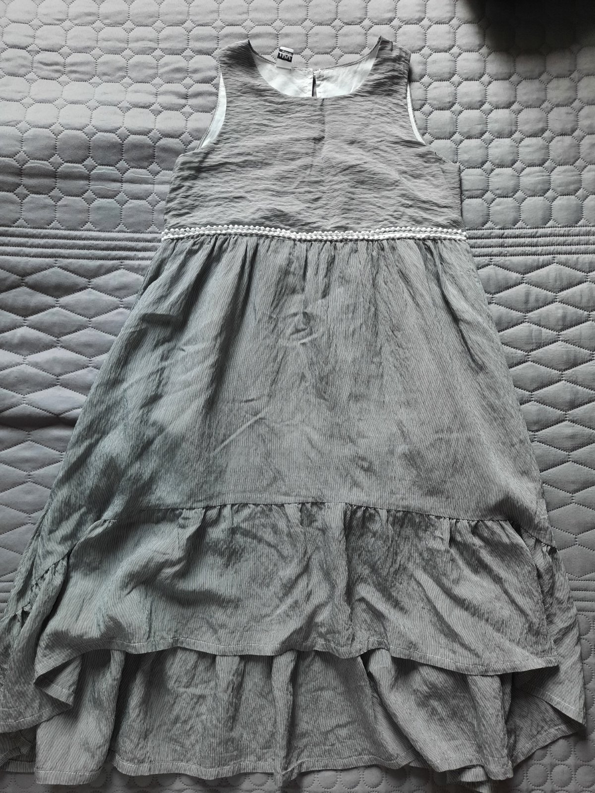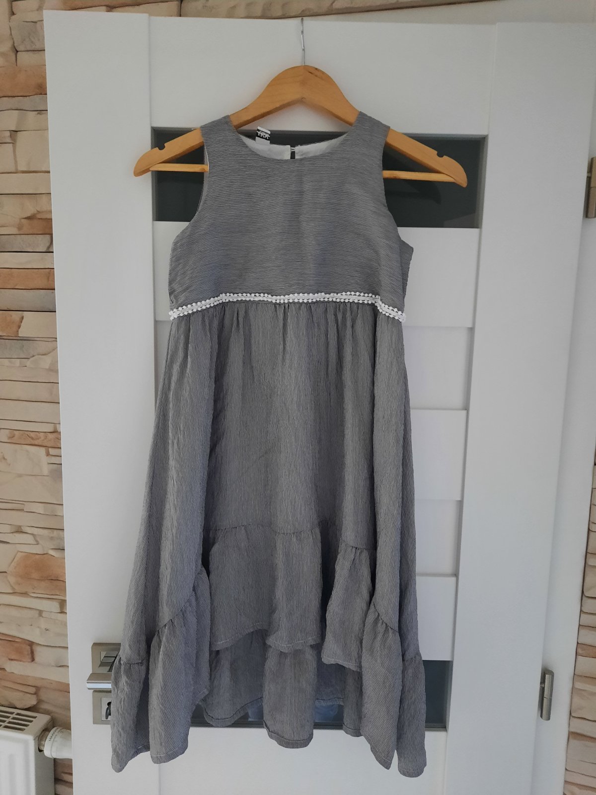 Predám pár krát oblečené letné šaty IDO 128/134 využili sme na svadbu a koniec školského roka, príjemný letný materiál , pôvodná cena 70€, jemné čierno- biele pásiky, vpredu kratšie ako vzadu, prsia 39 cm x2, dĺžka vpredu 74 cm, vzadu 89 cm, bez chýb, cena 20€