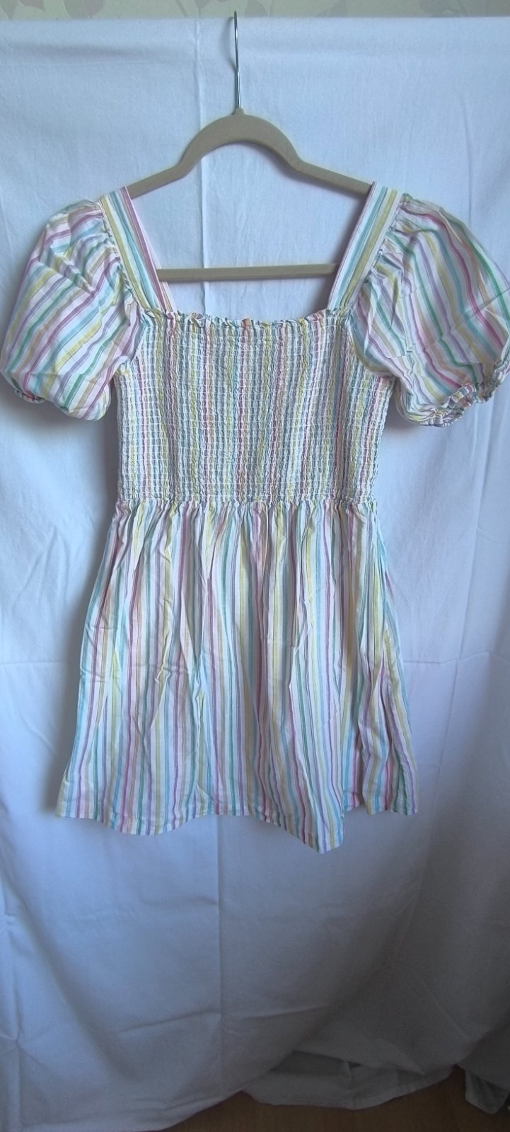 Minimálne nosené šaty, bez poškodení. Hrudník je elastický, šírka cez prsia 2x37cm, natiahne sa až do 2x50cm, dĺžka 84cm, šaty sú podšité.