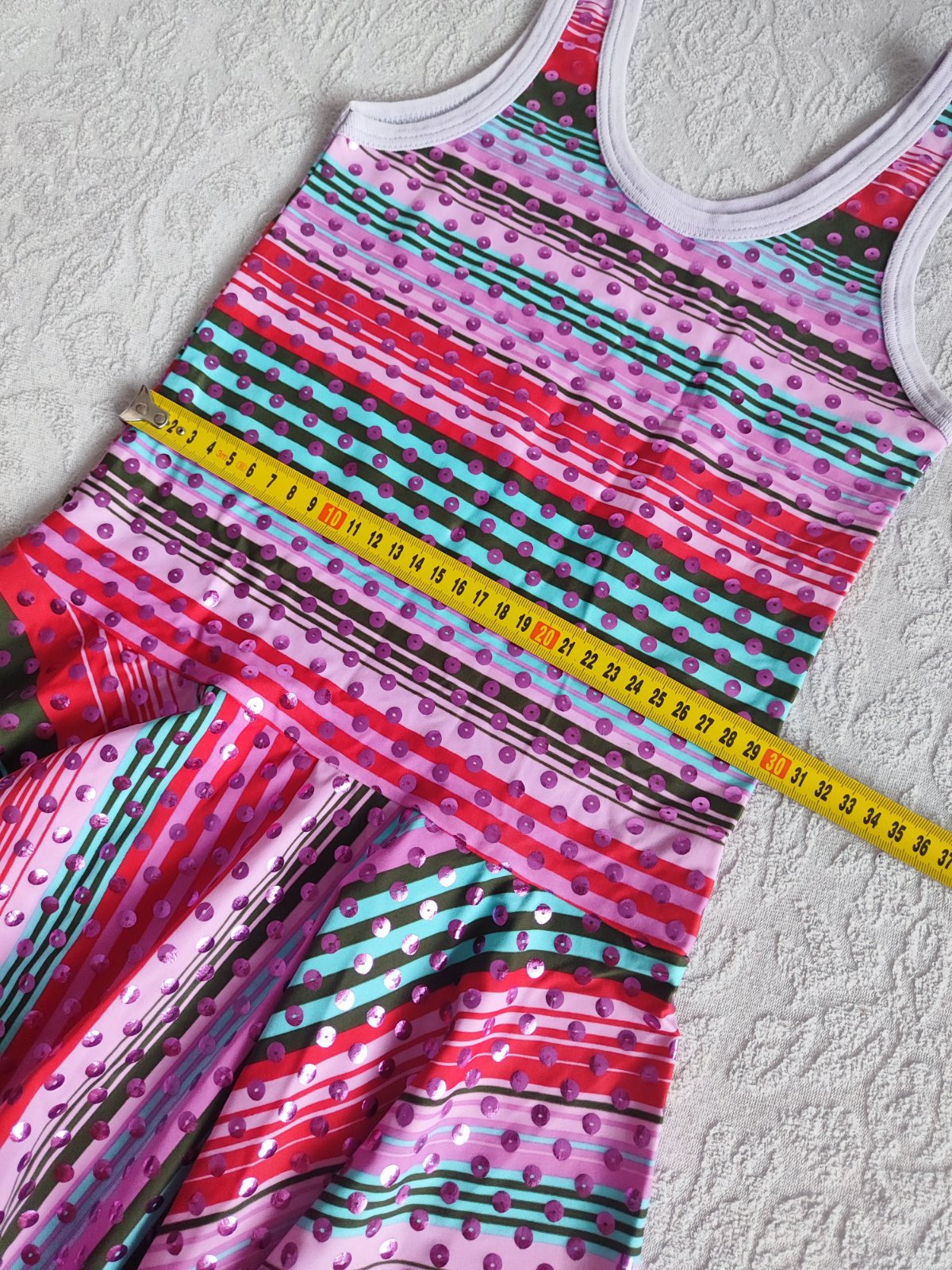 Šatky na doma, pár menších fliacikov vpredu aj vzadu. Dĺžka 61 cm, šírka pod pazuchami 33 cm.