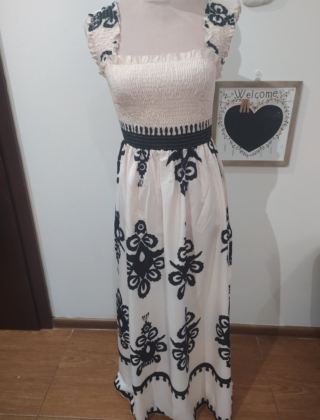 SkladomKrásne letné šatky,vrch presivsny gumičkami,sukňa jemne nariasená.Vel Uni vhodné pre veľ S-M