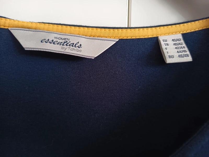 Nové tmavomodré dámske šaty s V-výstrihom, vreckami a dlhými rukávmi Tchibo 40/42.