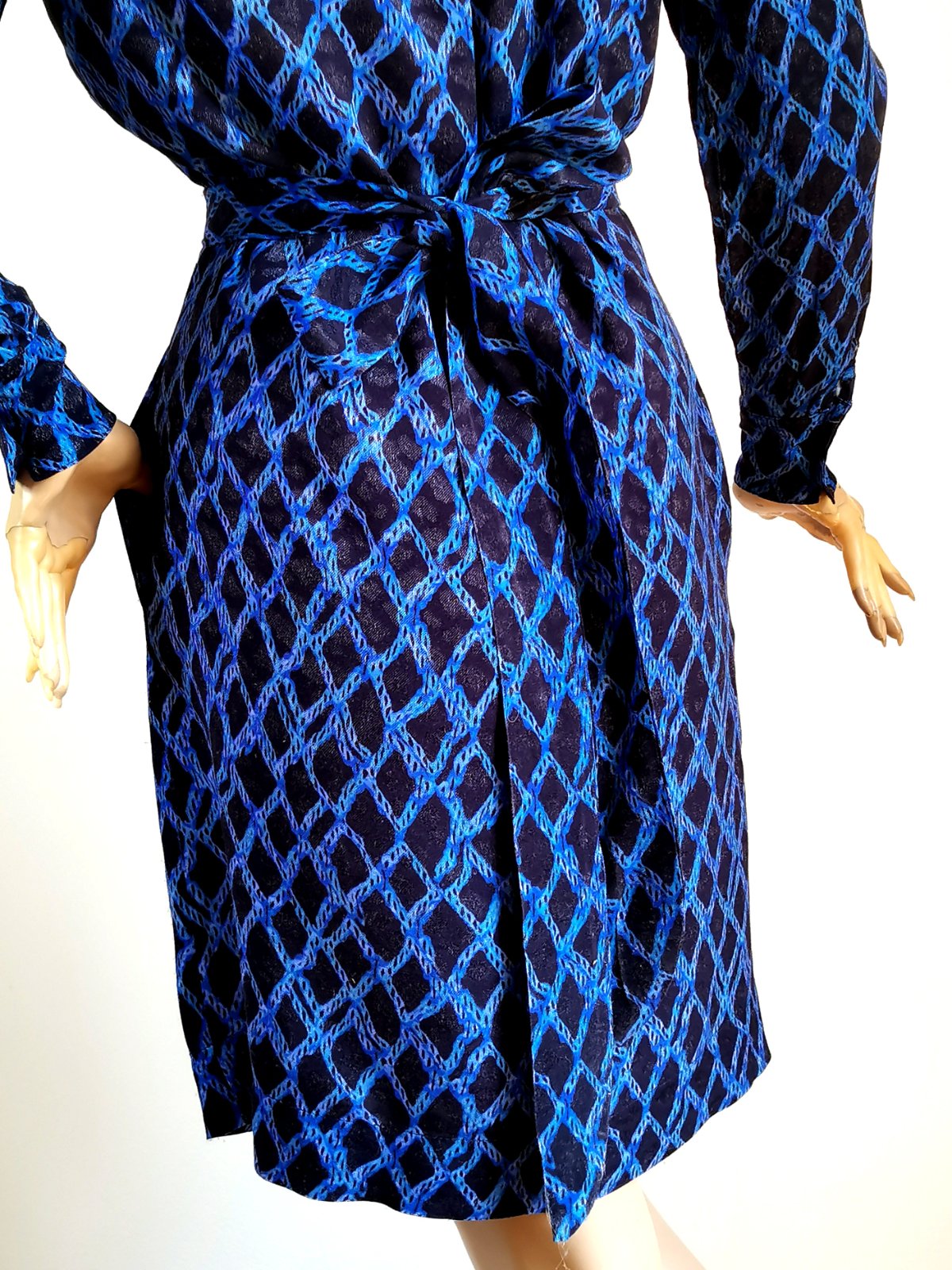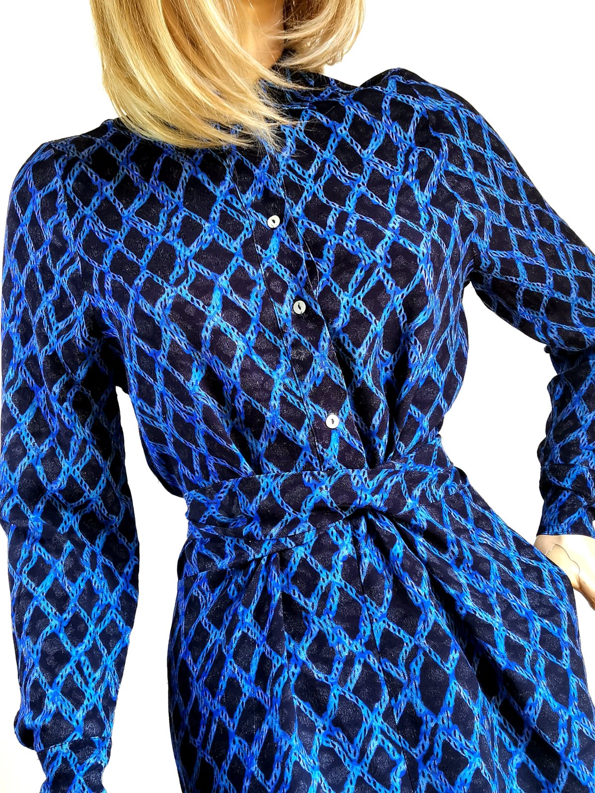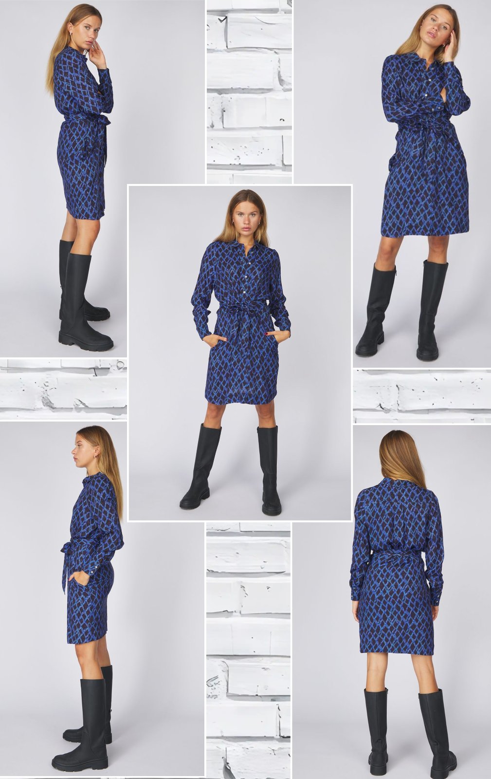 Z kancelárie rovno na večeru! Tieto krátke košeľové šaty pre moderné ženy sú prvou voľbou pre každú príležitosť. Šaty majú abstraktnú modrú potlač a stuhu okolo pása, ktorá ich zvýrazní.