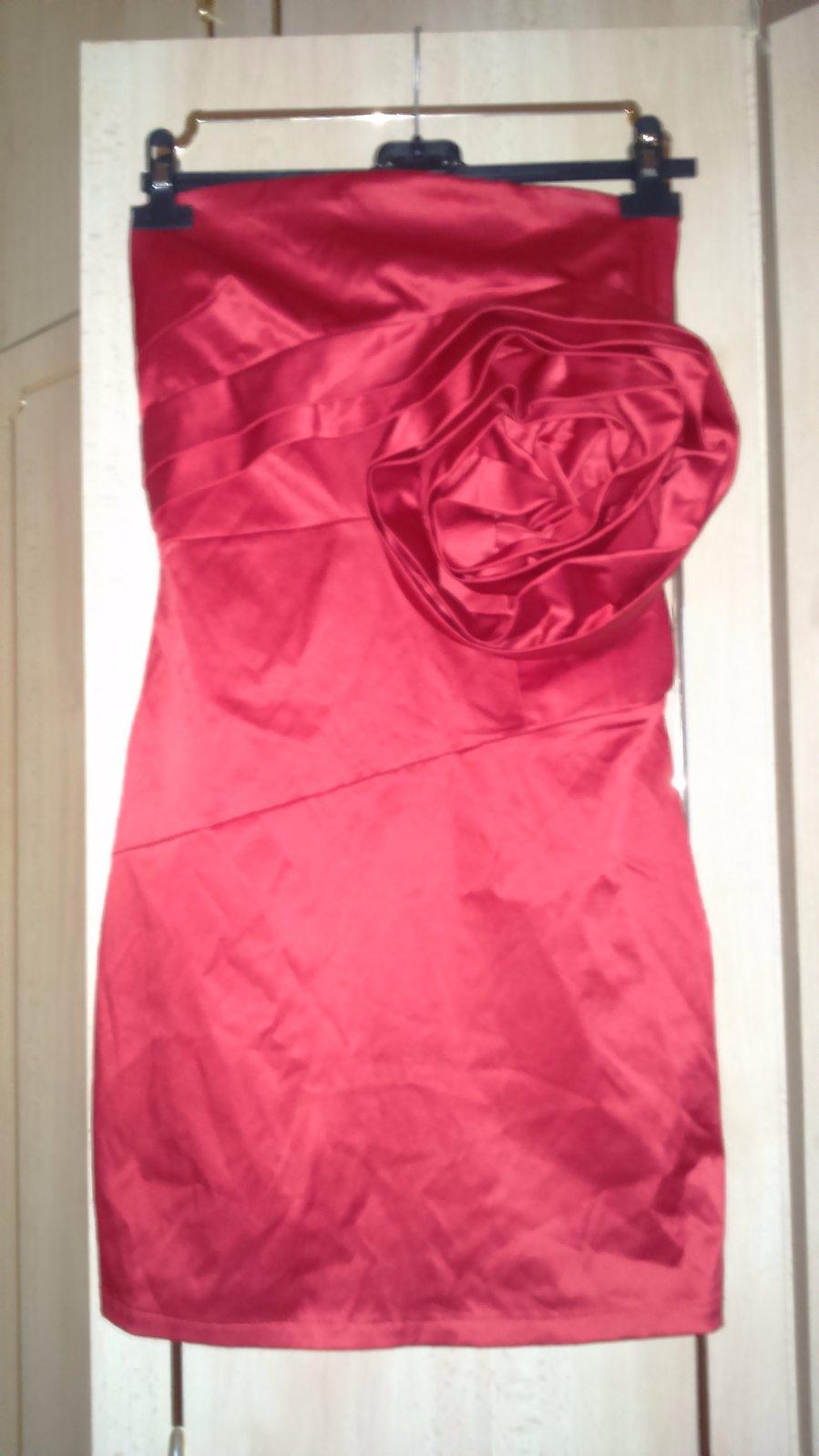 Čevené krátke saténové šaty.