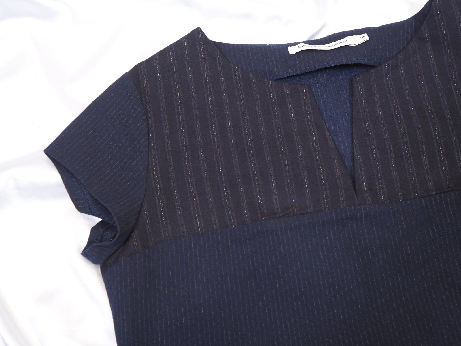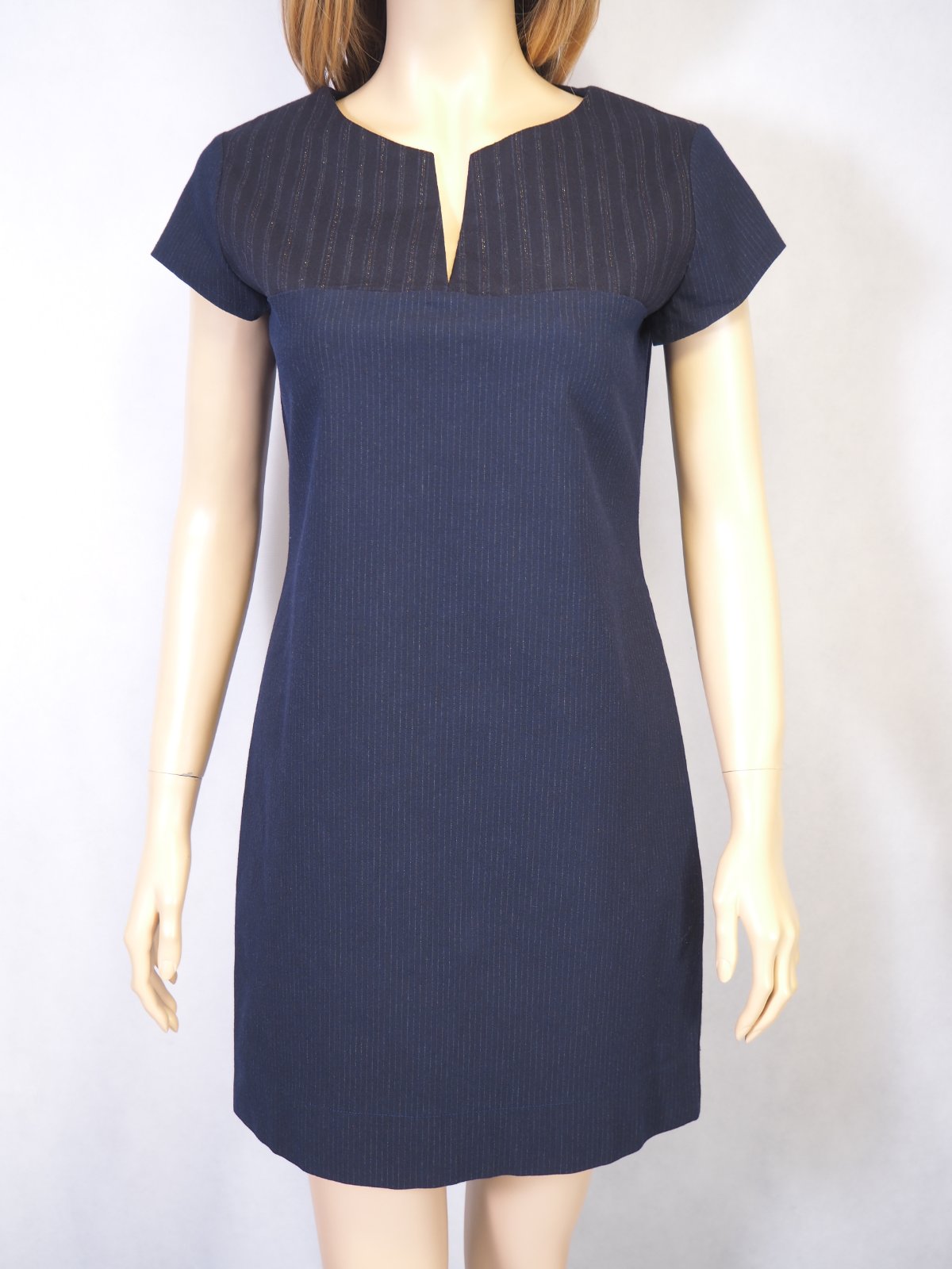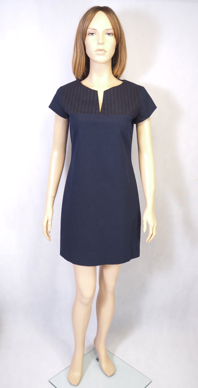 Luxusné tmavomodré šaty s jemným pásikom, bez podšívky, stredne hrubé, vypracované do detailov, materiál 80% viskóza, 17% bavlna, 3% elastan, super stav, ako nové.