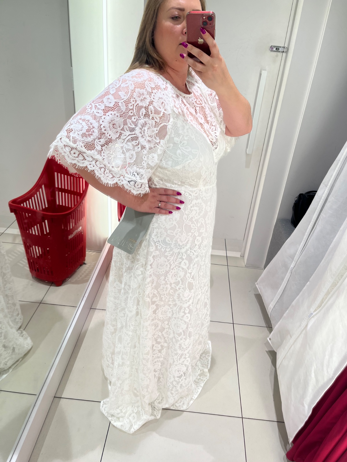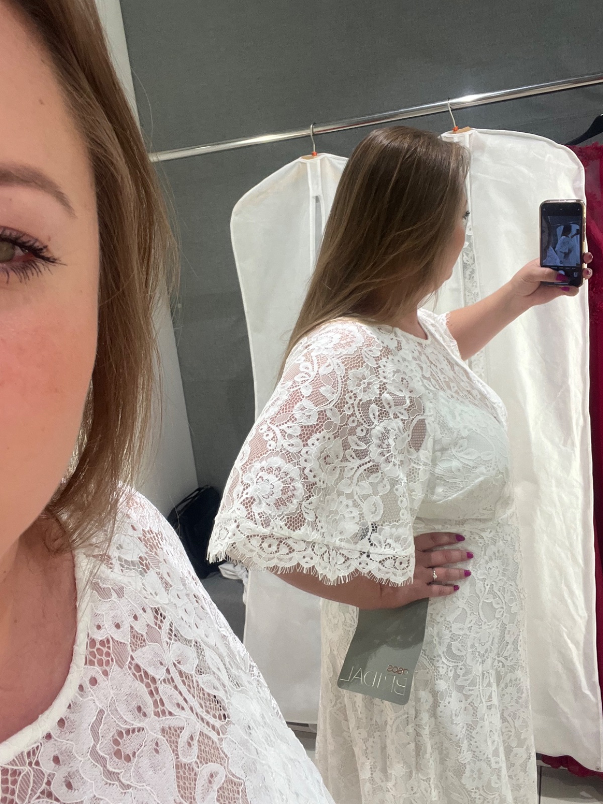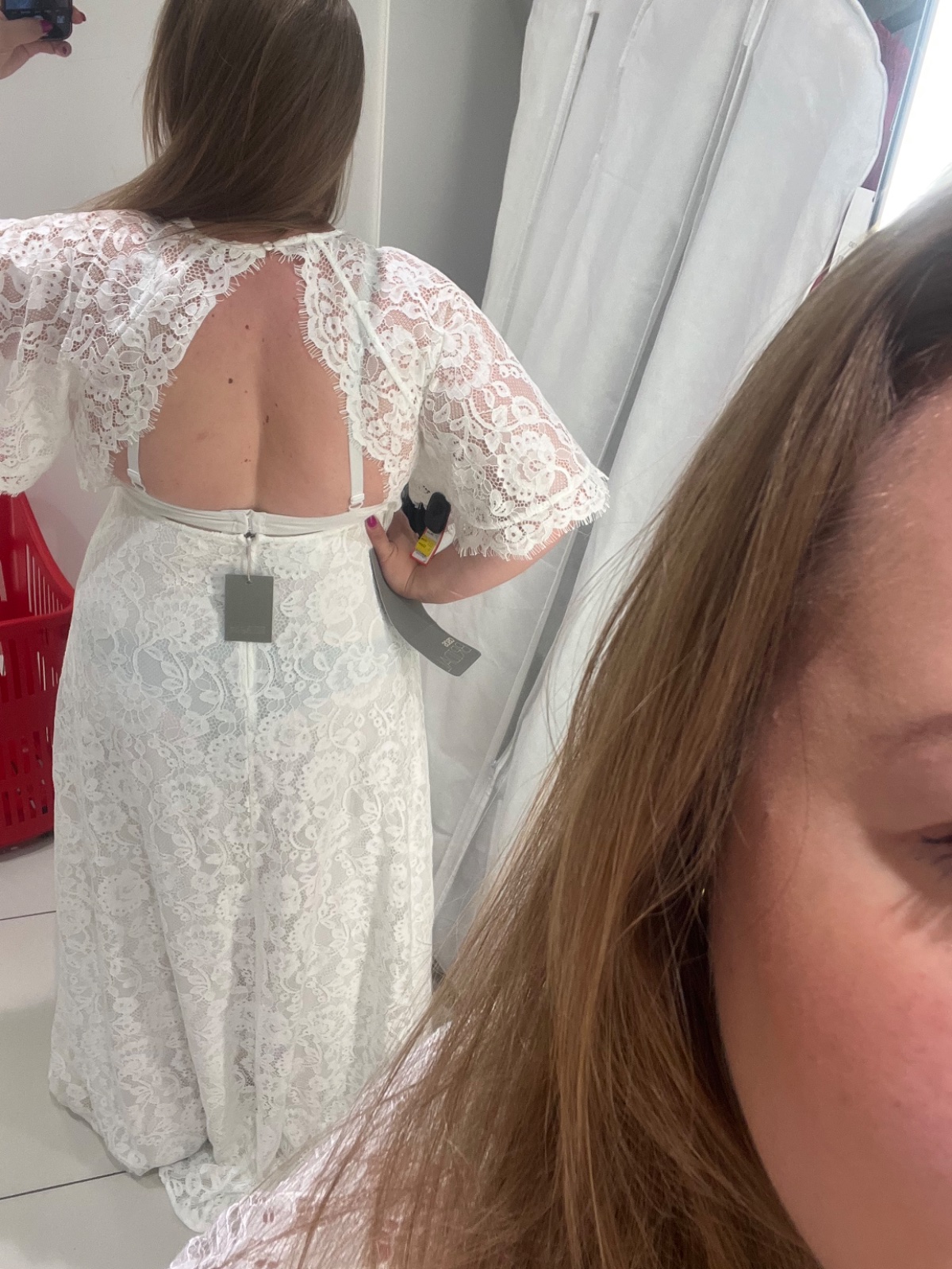 Saty su nove ale zaspinene hore skusanim cize si ich treba oprat/ dat vycistit.. su cele cipkovane, prisposobive, pekne, hore gombik, chrbat odhaleny tak sa sirka prisposobi, rukavy padave pekne zakryju nedokonalosti…XL/XXL